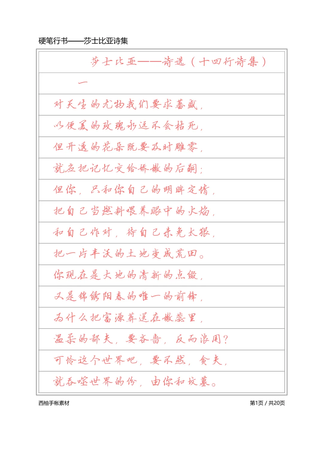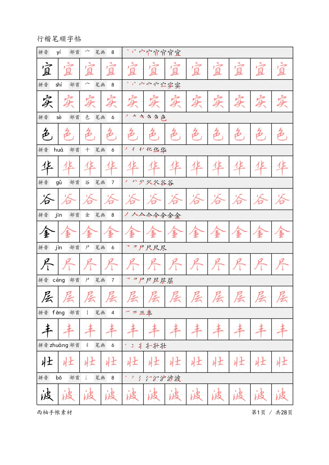本期关键字:字帖大全