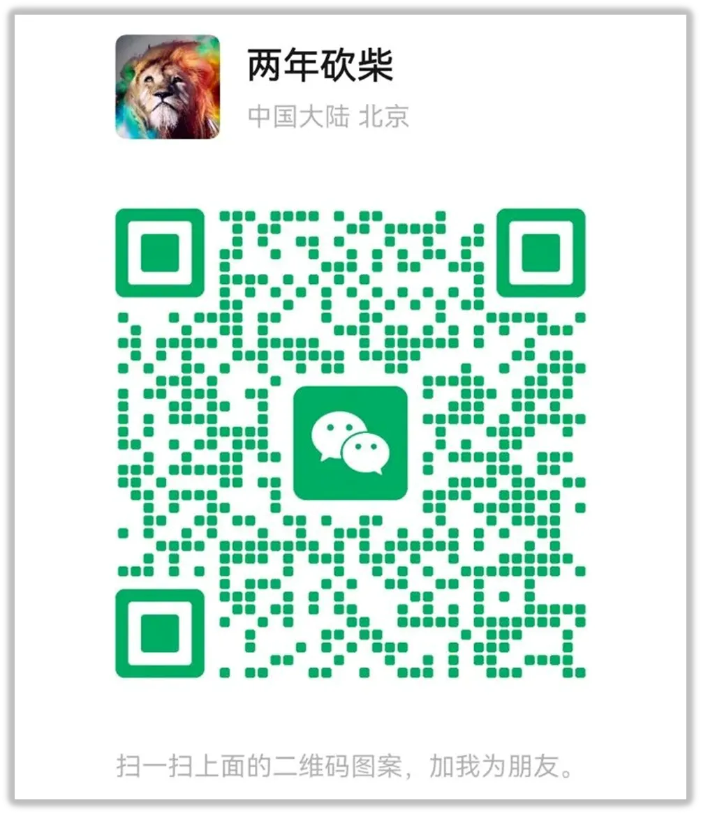📩 商务合作/转载授权 → 先关注公众号,然后加文末WX,加入读者群,备注“两年砍柴”即可。