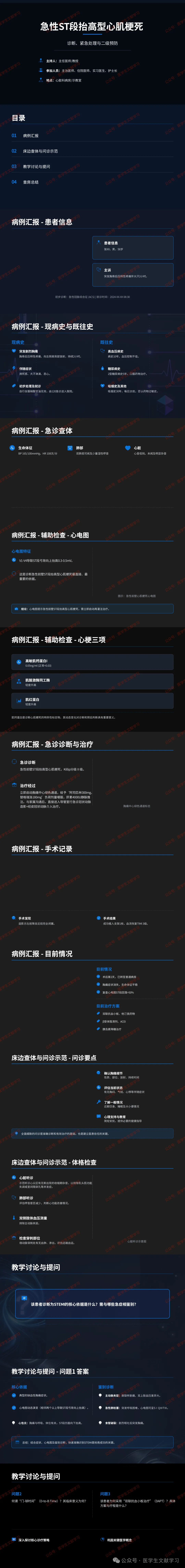 - 术后情况:胸痛消失,生命体征平稳,复查心电图 ST 段回落 > 50%,转至普通病房。