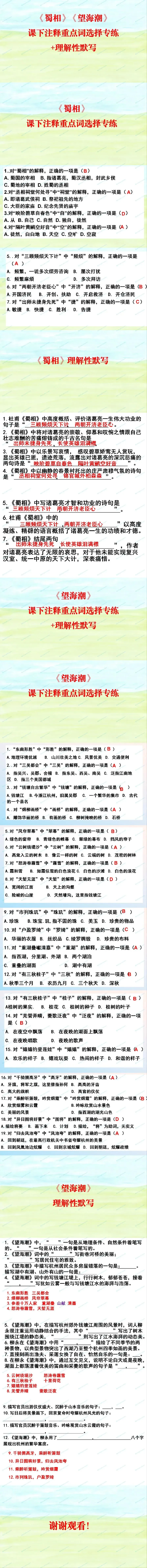 【ppt+word】《蜀相》《望海潮》课下注释重点词选择专练+名句检测