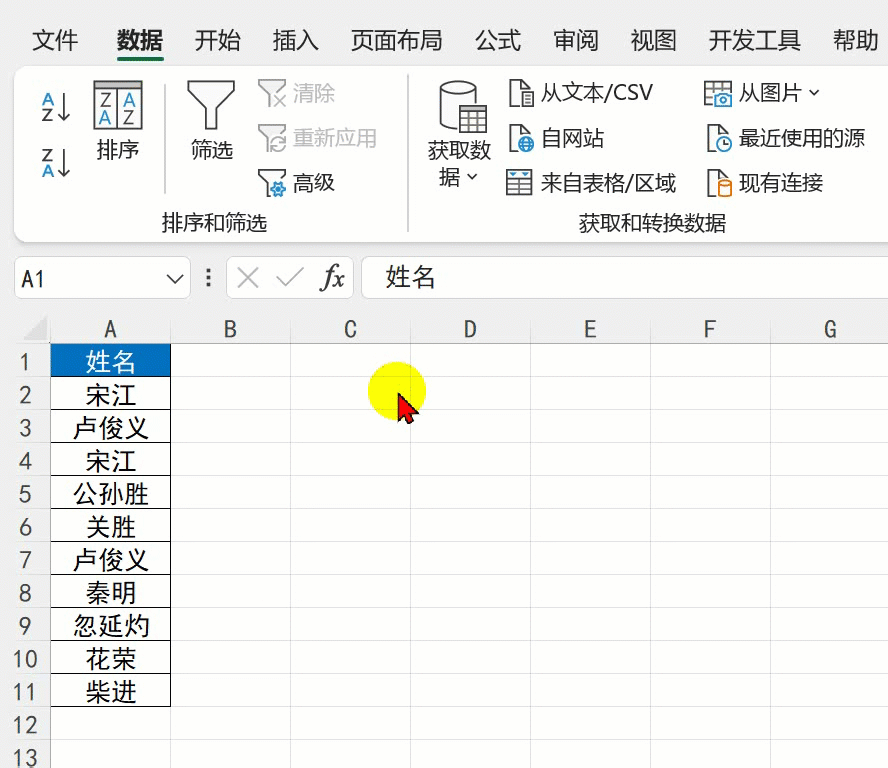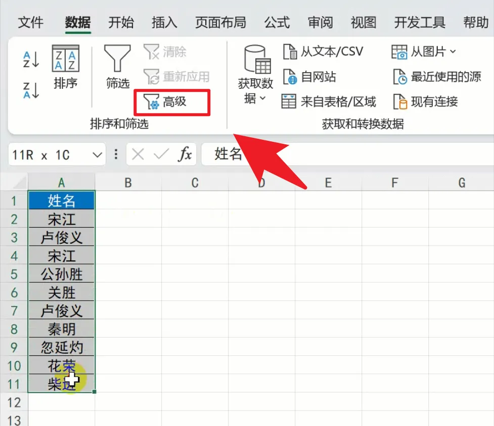 若想保留数据中的唯一值,高级筛选功能是不二之选。选中数据列后,在“数据”选项卡中点击“高级筛选”。