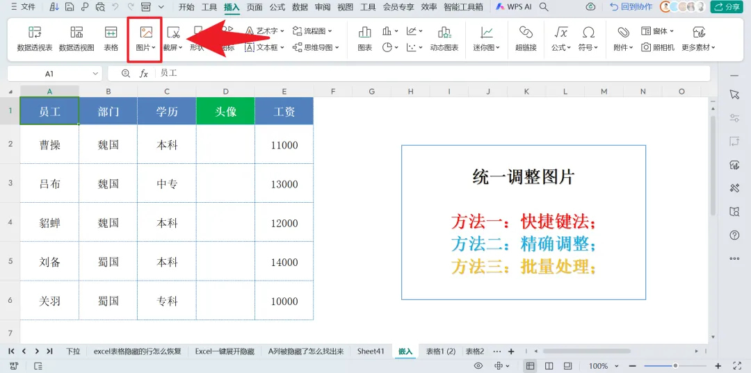 随后在菜单栏中找到“插入”选项卡,点击“图片”按钮,从计算机中选择目标图片并点击“插入”。图片随即出现在工作表上。