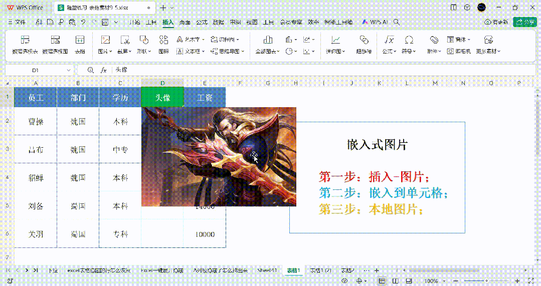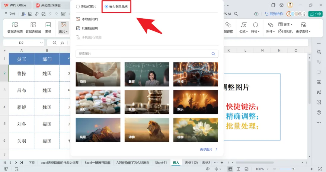 点击后,图片便成功嵌入到单元格中,无论单元格大小或位置如何调整,图片都会紧密跟随变化,无需手动干预,大大提高了工作效率和表格美观性。