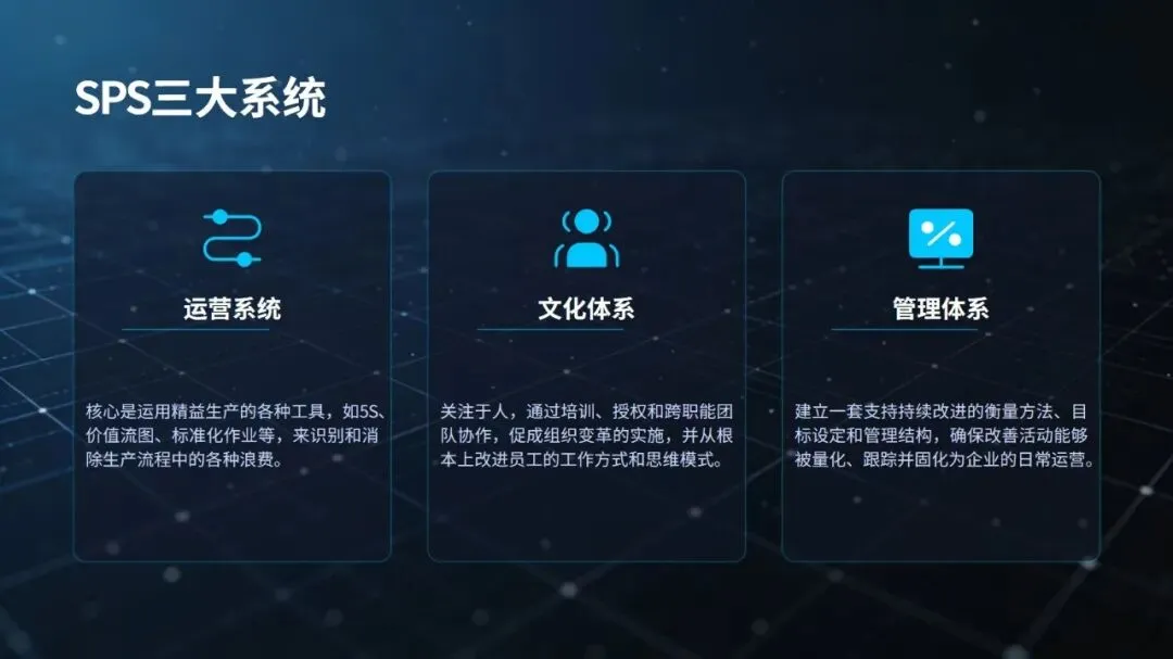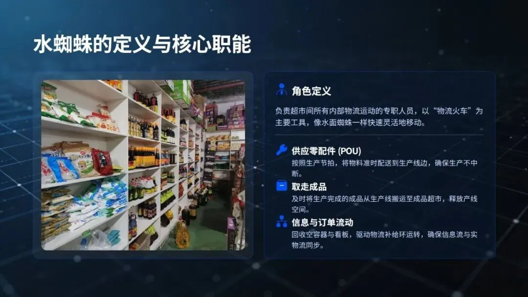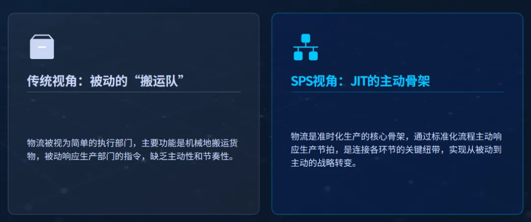SPS体系作为物流标准化操作实施的核心引擎,包含了三大体系,即运营体系、文化体系和管理体系,其核心理念是“拉动生产”、“可视化管理”等,并通过“RIW”技术,能够在五天之内提升运营绩效30%~50%,并对员工的能力发展和部门间的合作进行深度提升。物流标准化运作的核心工具有「超级市场管理」与「水蜘蛛」,超级市场管理将传统的库存点升级为「动态库存池」,利用固定库位与先进先出的特性,对库存流程进行优化,再配合「安全库存定量模式」与「集装箱标准化」,可以降低22%的库存,节省17%的年物流成本;水蜘蛛系统作为物流流动的调度枢纽,通过 MTM法的时间测量和物流列车能力的优化,实现了与生产节奏的精确匹配,从而实现了物料分配、成品交接和信息传递的有效闭环。