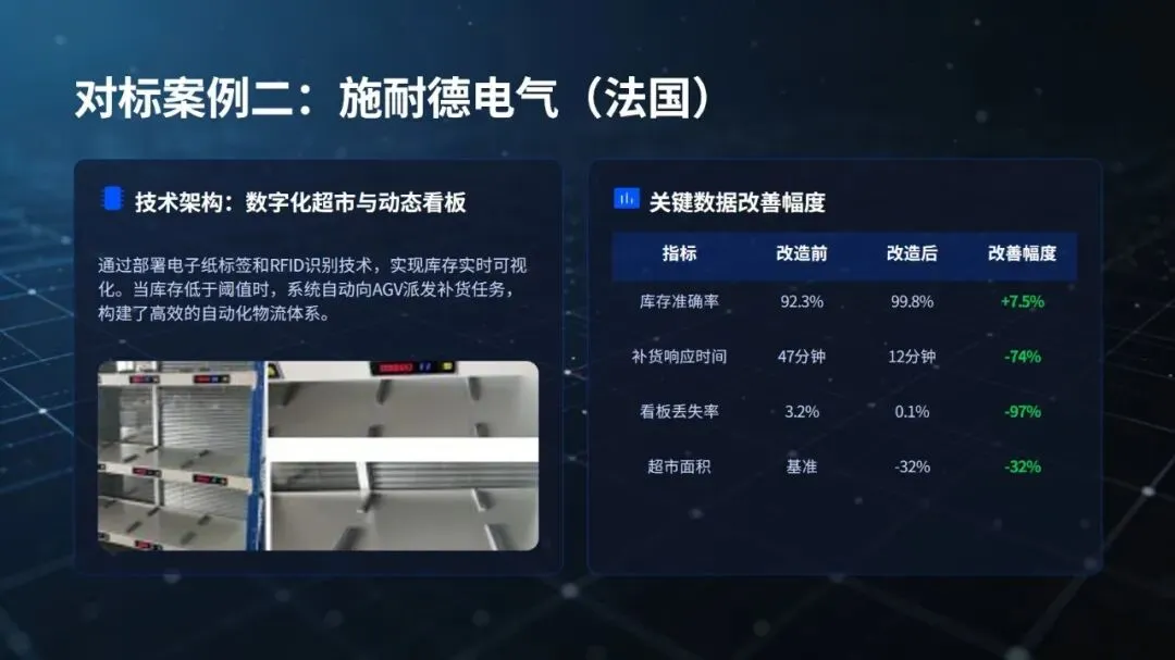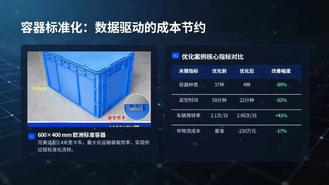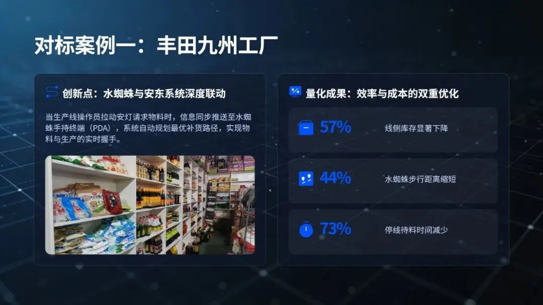 国内外先进企业物流标准化操作优化实践,为物流标准化操作优化提供明确的标杆导向,如丰田汽车九州厂采用水蜘蛛系统和安东物流系统的深度集成,使生产线库存减少57%;施耐德电子公司利用数字超市和动态的看板系统,减少了74%的补给反应时间;三一重工5G+云计算物流调度系统“水蜘蛛”的成功应用,使企业物流的响应时间缩短了58%,为企业实现物流的数字化和智能化提供了现实的借鉴。