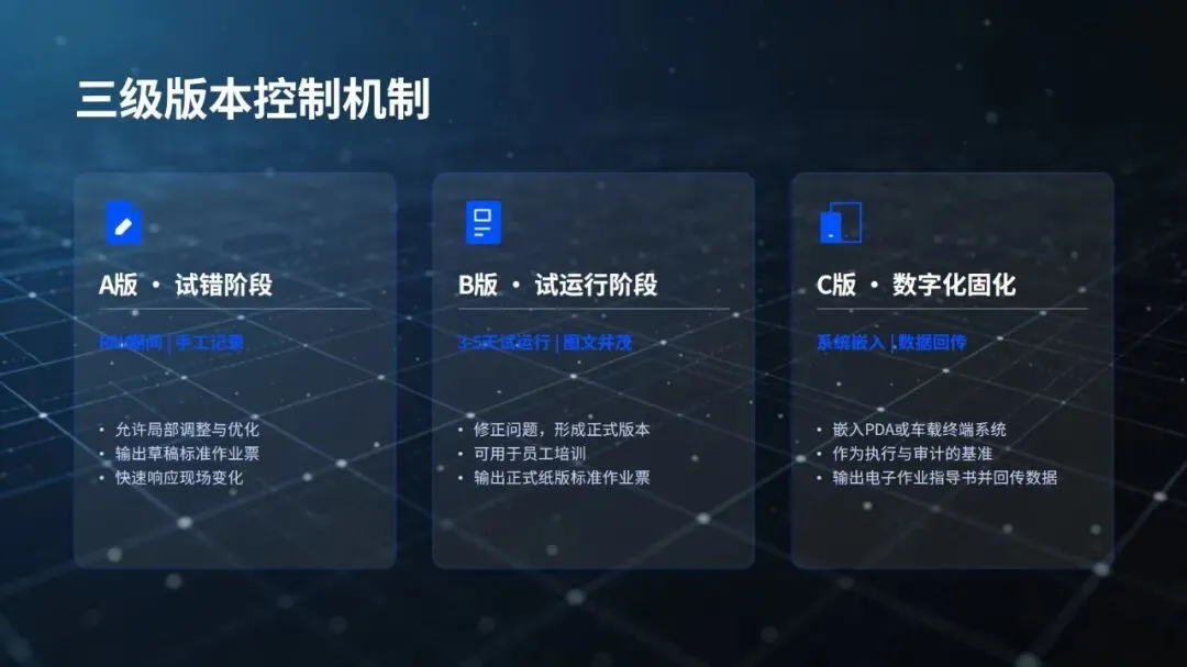 物流标准化作业的不断优化需要数据驱动,物流企业必须由经验决策向算法驱动转变,采用低成本的物联网感知解决方案,以传感器为载体,建立物流数字化基础设施,利用“数字孪生”技术,实现实体系统实时映射、关键绩效指标自动计算和异常报警等功能,从而提高物流企业的信息化水平。同时,建立“试错 A、试运行 B、数字化固化 C”的三级版本管理体系,并辅以季度审核,实现对标准的不断更新;文化方面,由短期的改善工作坊升级为定期的改善工作坊,透过改善成果和奖金挂钩的奖励制度,鼓励员工积极参与,以达到改善建议数量和有效提议率的双赢。