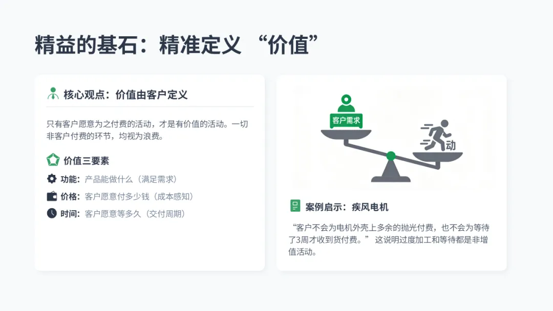 要消灭浪费,首先得能看见它。精益理论将浪费归纳为七大类型(TIMWOOD),但看板之前,我们必须精准定义价值。