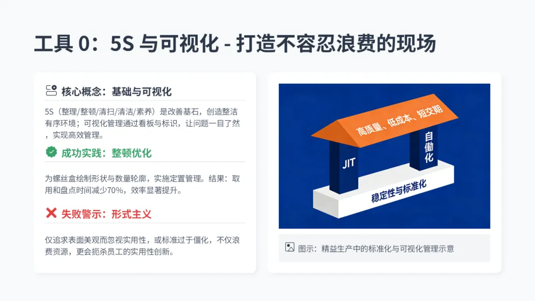 • 工具 0: 5S 与可视化 - 打造 “透明” 的现场