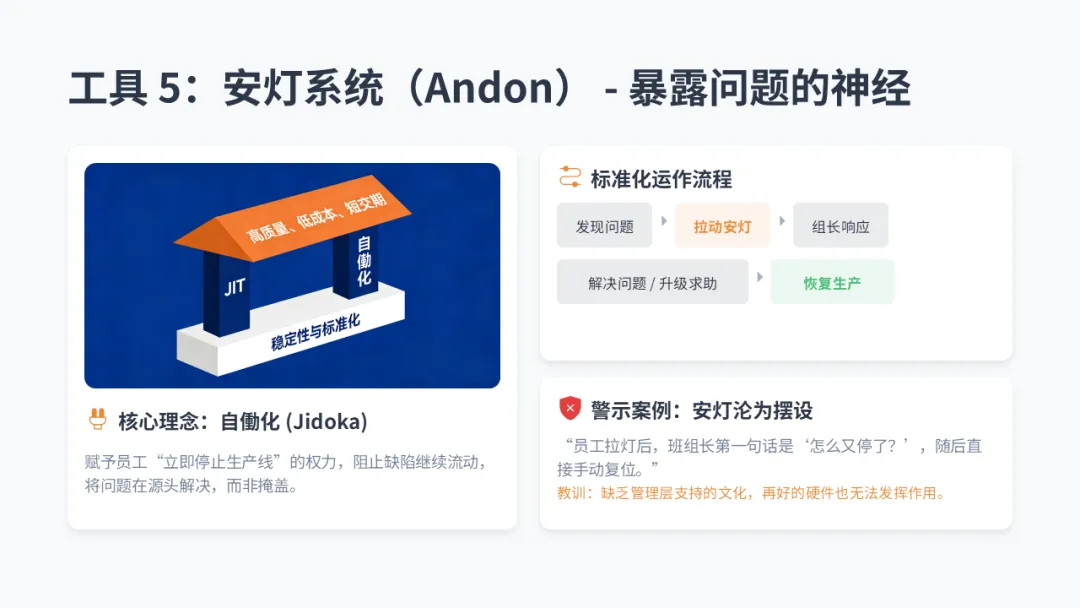 • 工具 4: 安灯系统(Andon) - 暴露问题的神经