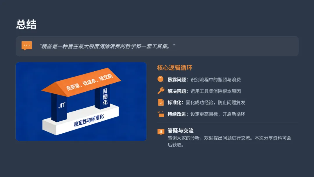 所有这些工具和方法,不能孤立使用。它们是一个系统,可以用经典的 **“精益屋”** 来理解: