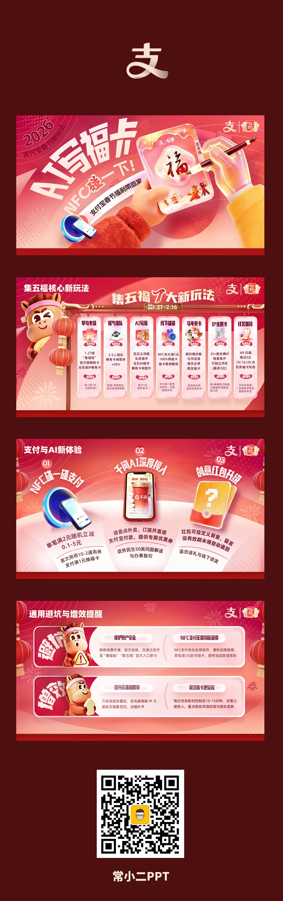 今天为大家分享关于支付宝集福的一份活动介绍练习PPT,下面就把本次练习作品进行拆解和复盘,分享关于作品的设计思路。进入正题