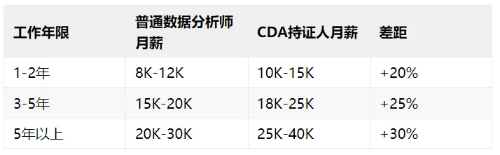 CDA持证人与普通数据分析师薪资对比(以一线城市为例)