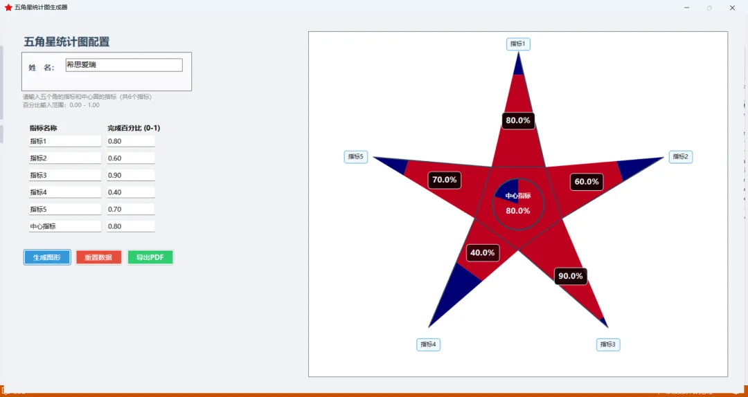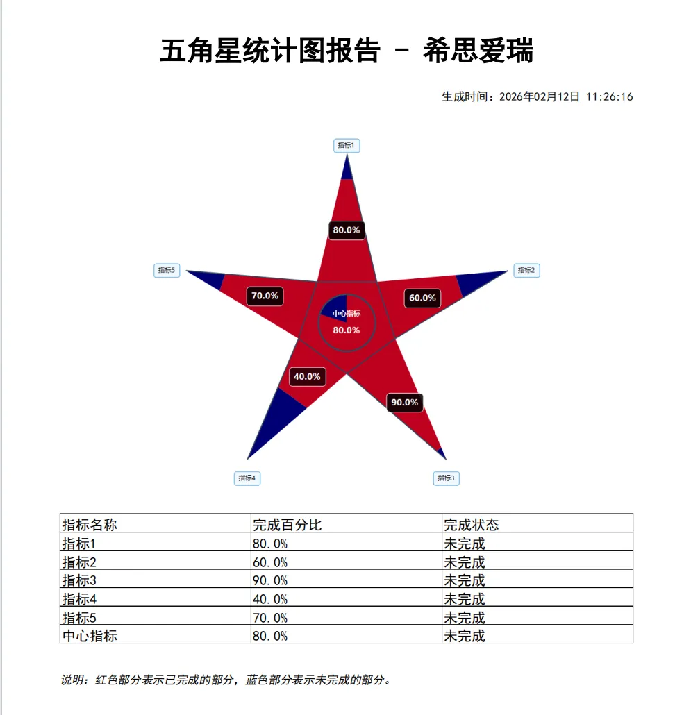 上周,同事小李的季度汇报惊艳全场。当别人还在展示平平无奇的Excel表格时,他放出了一张彩色五角星统计图——五个角分别代表不同指标,进度一目了然,中间还有个会“说话”的中心圆。