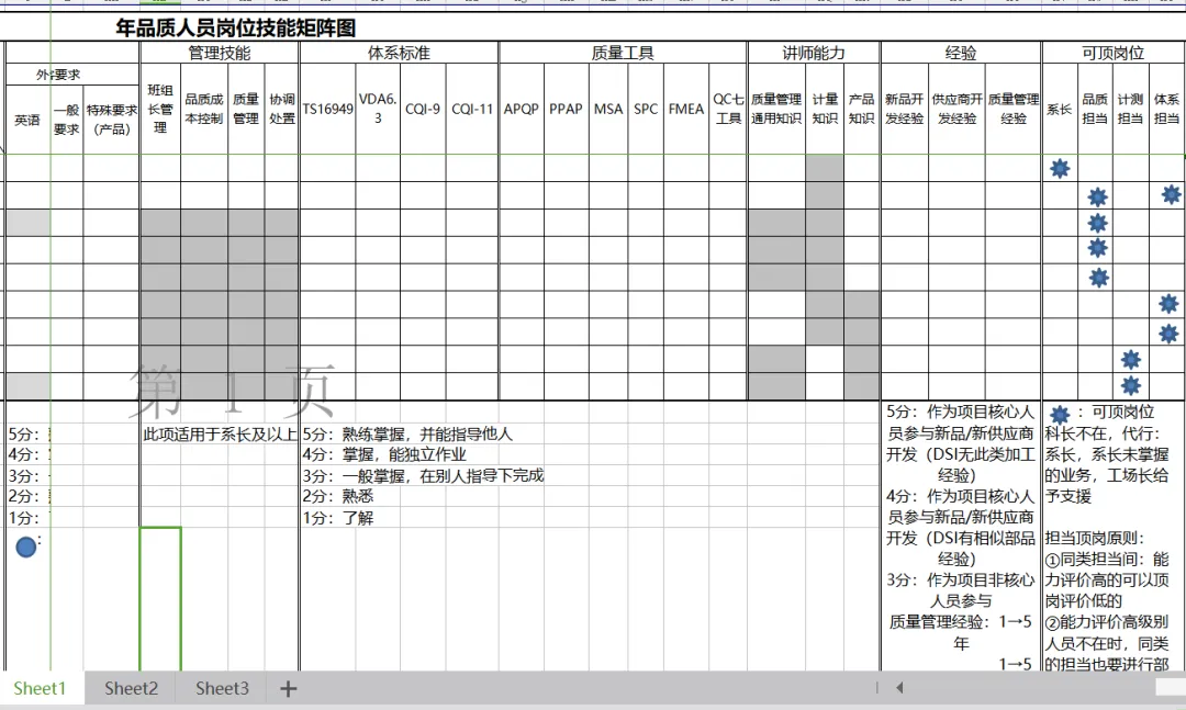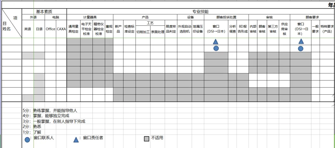 品质人员岗位技能矩阵(经典)