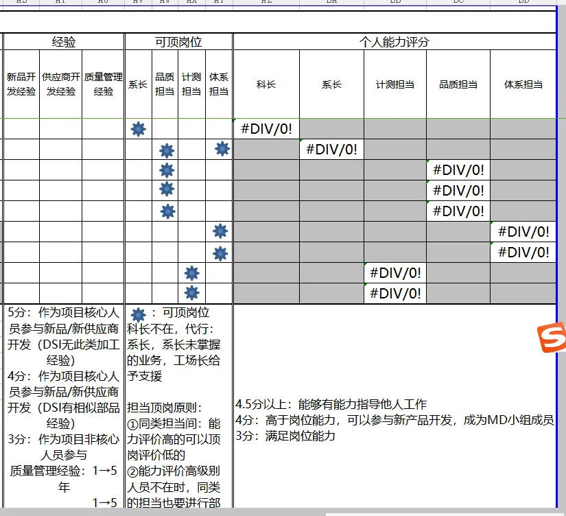 ②能力评价高级别人员不在时,同类的担当也要进行部分业务顶岗,对于未掌握的业务部分,系长及科长级人员要给予支援