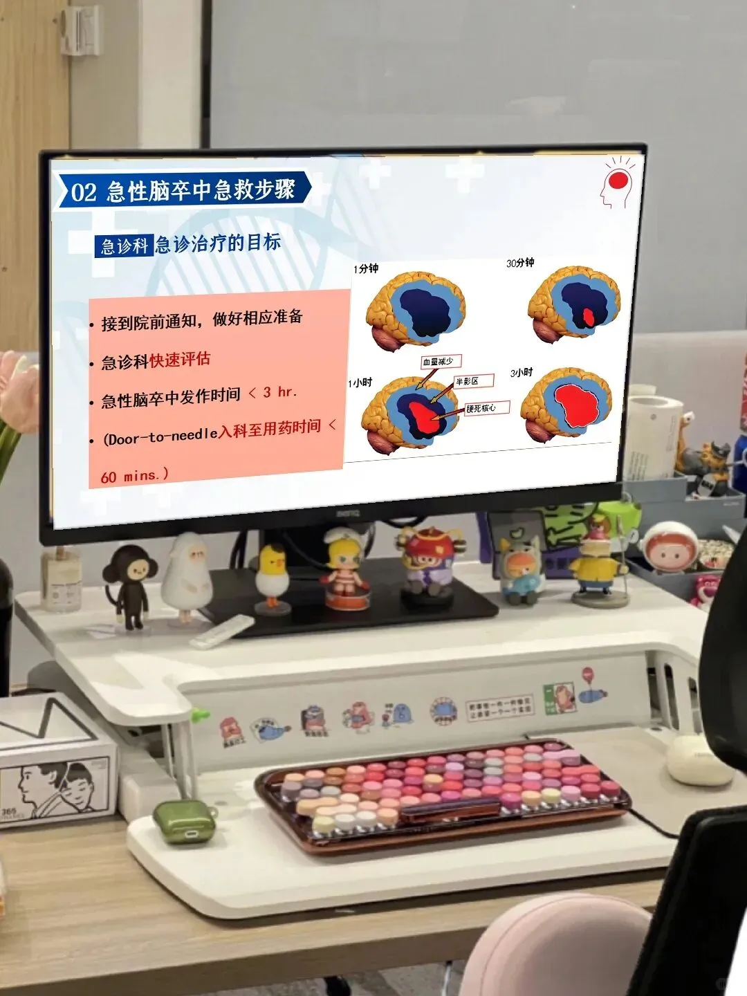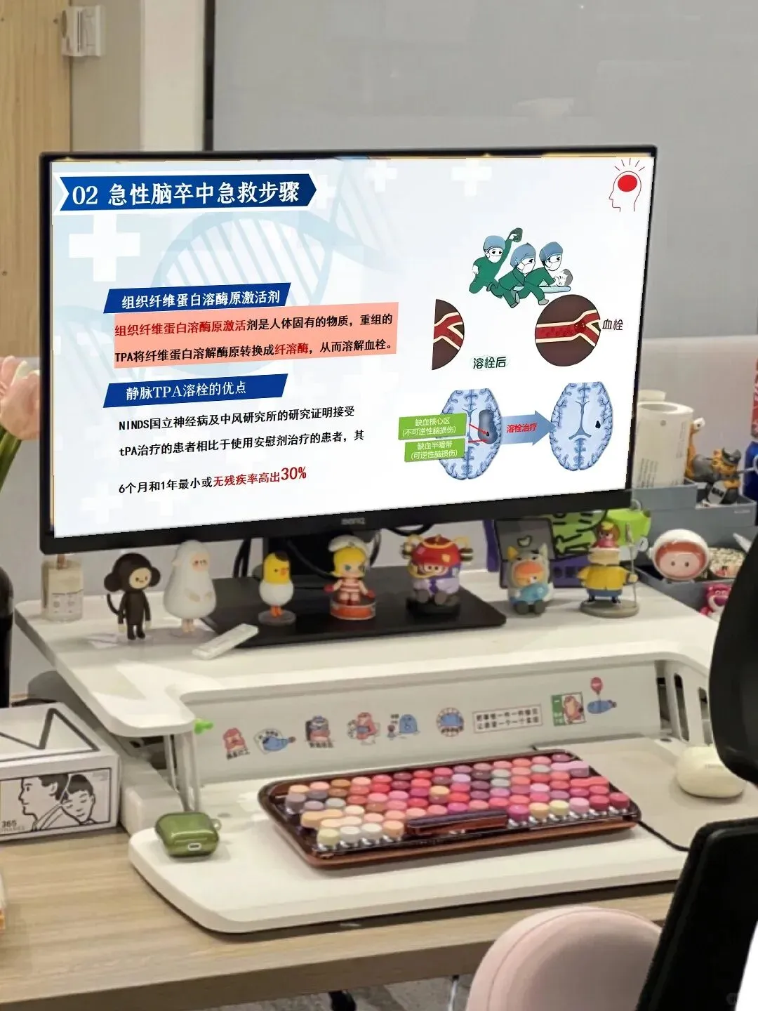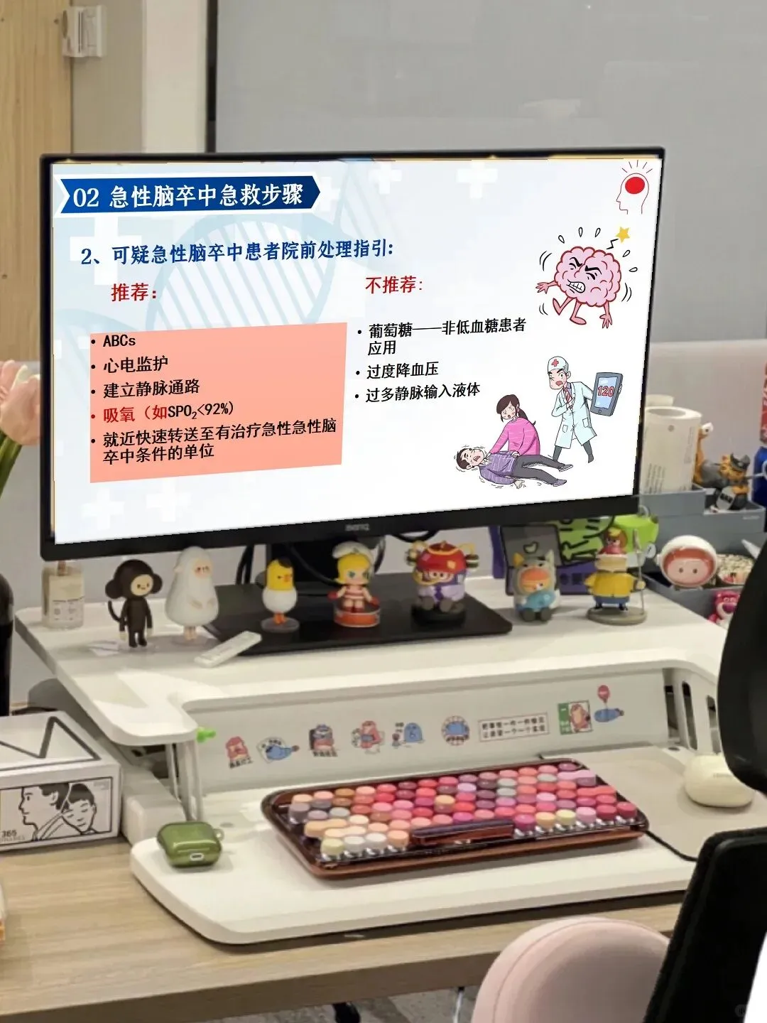 急救流程必须环环相扣,院前要快速识别并呼叫 120,做好 ABC 评估、心电监护、建立静脉通路,吸氧维持血氧饱和度≥92%,避免过度降压和大量补液,快速转运至有救治能力的医院。院内要开启绿色通道,3 小时内是静脉溶栓黄金时间,入科至用药需控制在 60 分钟内,溶栓前需通过 CT 排除出血,严格把控适应症和禁忌症,按 0.9mg/kg 剂量规范使用 tPA,密切监测颅内出血等并发症。