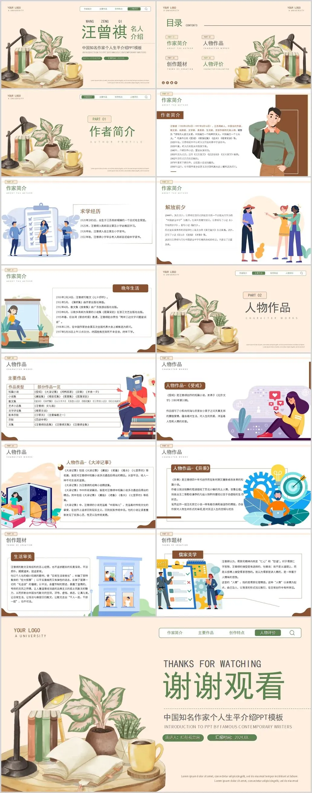 微课堂|汪曾祺文学人生主题班会PPT无讲稿,ppt页数:22页。