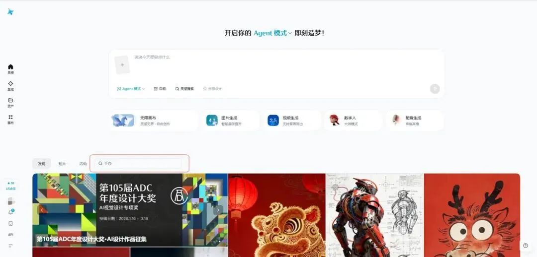 我们做PPT,往往会搜集大量的图片放在Eagle这种专用软件里,作为我们的设计灵感。即梦有一个功能,可以说足以让我们卸载这种软件,让我们的设计工作方便很多。它,就是设计灵感,如下图红框: