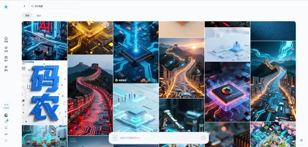 举个例子,我在红框内输入“芯片电路”,回车后就可以看到很多相关图片: