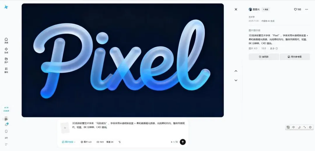 在即梦中,可以用很简单的方式做出来炫酷的字效。用到的,还是上面“设计灵感”那个输入框。