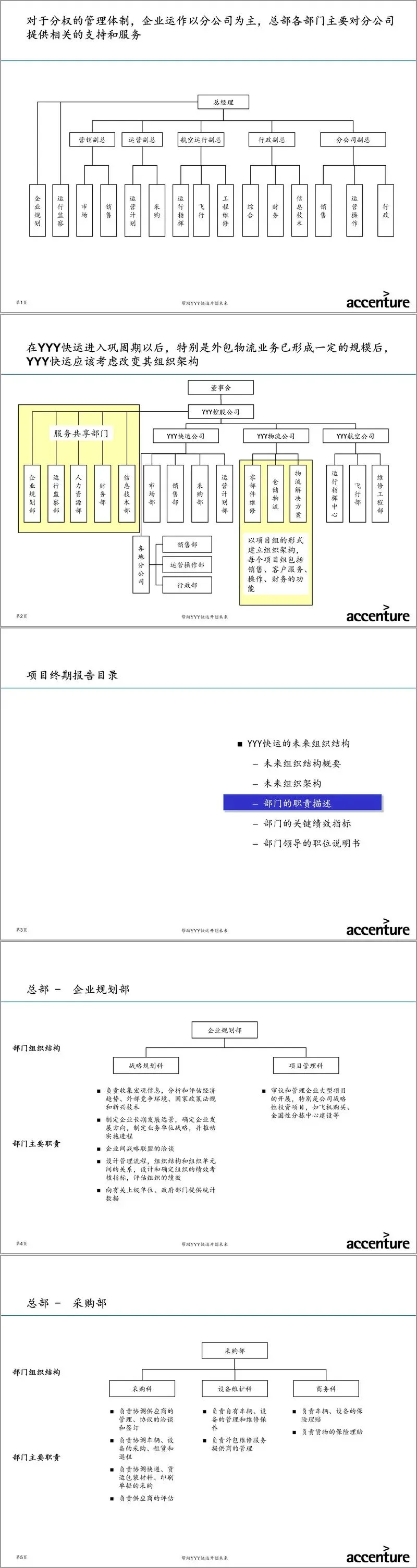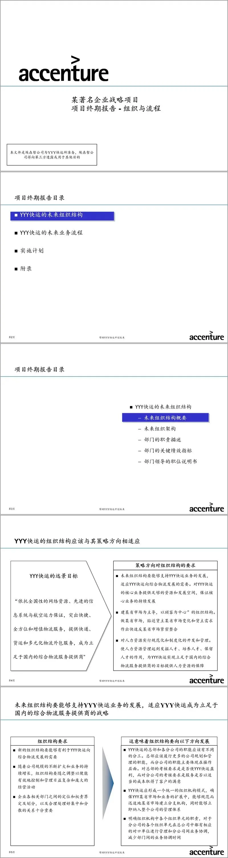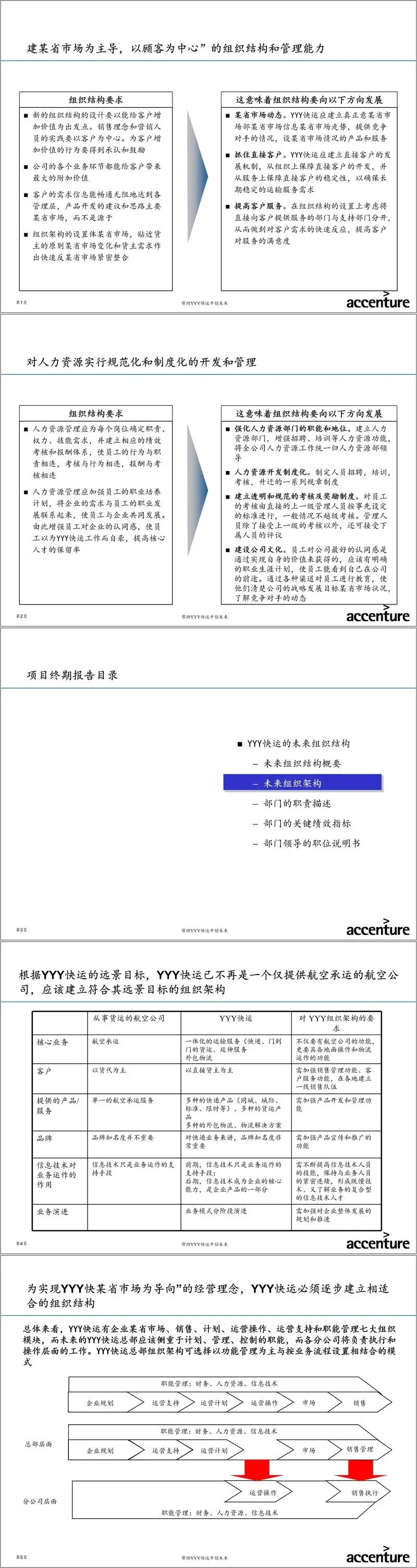 本报告是埃森哲为YYY快运(以下简称“公司”)提供的战略项目终期报告,核心聚焦于支撑公司战略远景的“组织与流程”体系设计。报告旨在系统性地规划公司从传统航空承运商向“立足于国内的综合物流服务提供商”转型所需的组织架构、业务流程及实施路径。