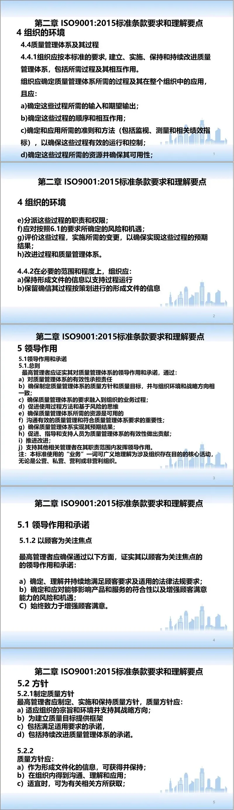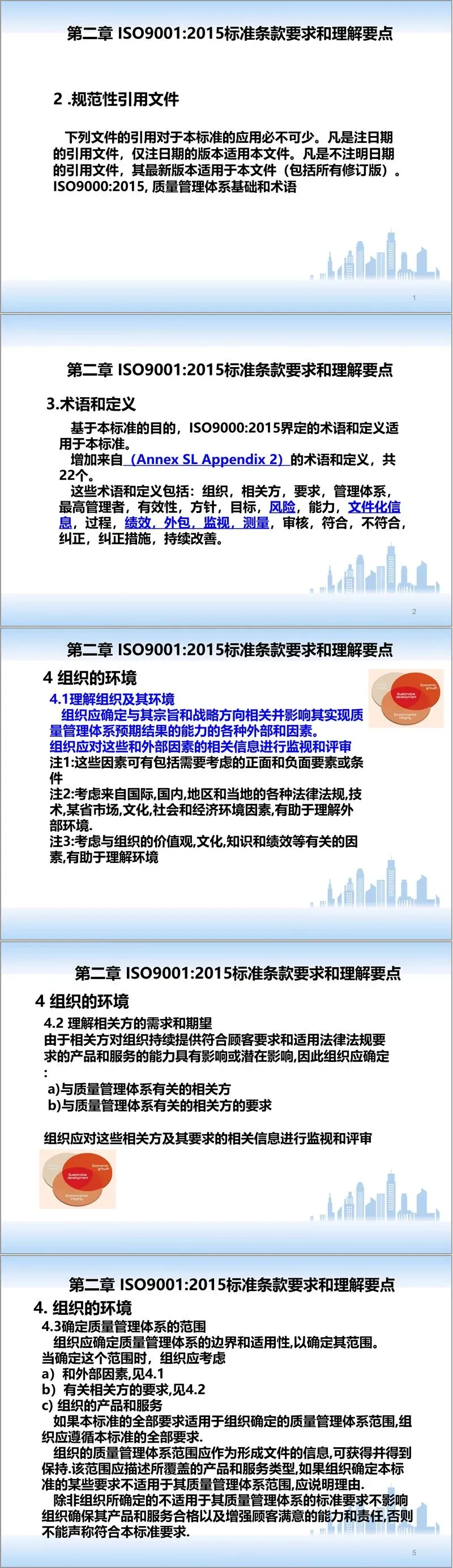 在具体条款解读部分,文件逐章展开,从“组织环境”到“改进”,详细阐述了每个章节的要求与实施要点。例如,第4章强调组织需识别内外部因素及相关方需求,以确定质量管理体系的范围与边界;第5章突出领导作用,要求最高管理者亲自推动体系融入业务、分配职责并促进以顾客为关注焦点;第6章聚焦策划,包括风险应对与质量目标设定;第7章涵盖资源、能力、意识与文件化信息的支持要求;第8章全面规范运行控制,从需求确认、设计开发到外部供方管理与生产服务提供;第9章强调通过监视、测量、分析与评价来审视体系绩效;第10章则着眼于改进机制,包括不合格处理与持续改进。整体来看,新版标准更注重体系的整体性、灵活性与结果导向,鼓励组织根据自身实际来构建真正增值的质量管理体系。