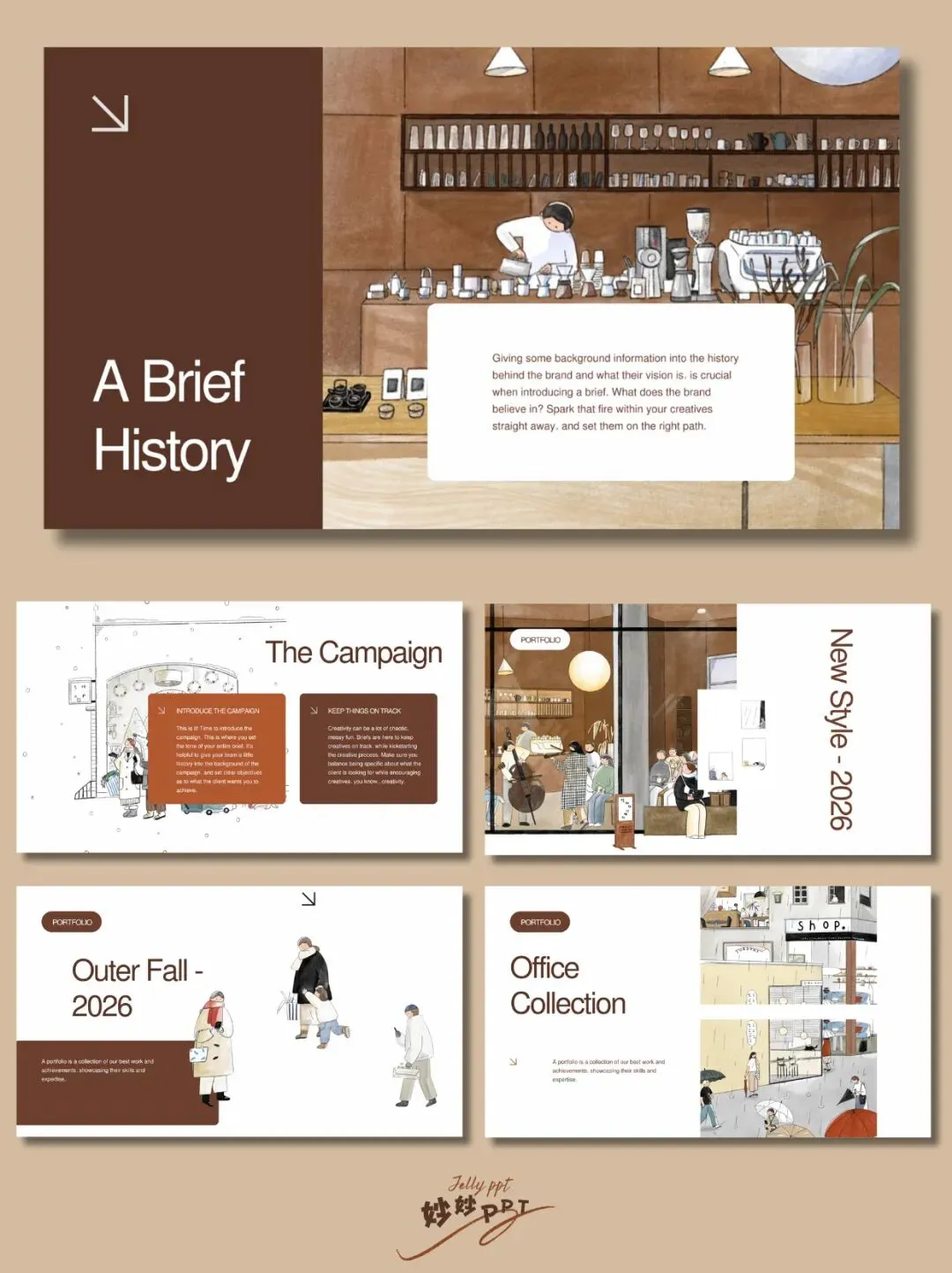 >298|温暖小事|棕色咖啡色美拉德色系ppt模板|简约风PPT|ppt课件