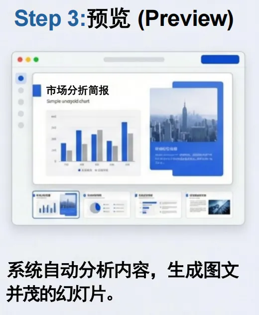 等待生成:系统自动分析内容,组织逻辑,生成图文并茂的幻灯片。