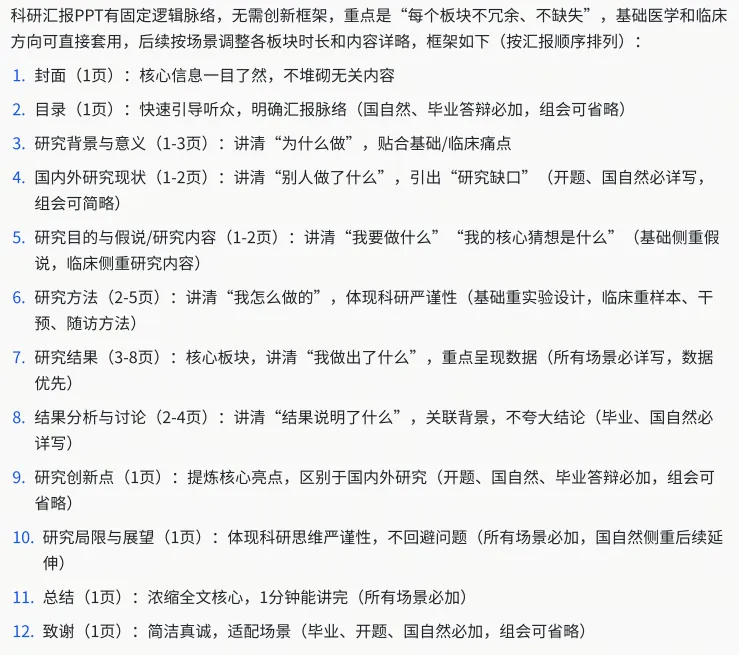 要想PPT真正打动导师和评委,还需要学科专业的深度优化,本次直播课还为大家准备了《科研汇报PPT制作全教程》,它专门针对基础医学和临床方向,拆解了四大核心场景:
