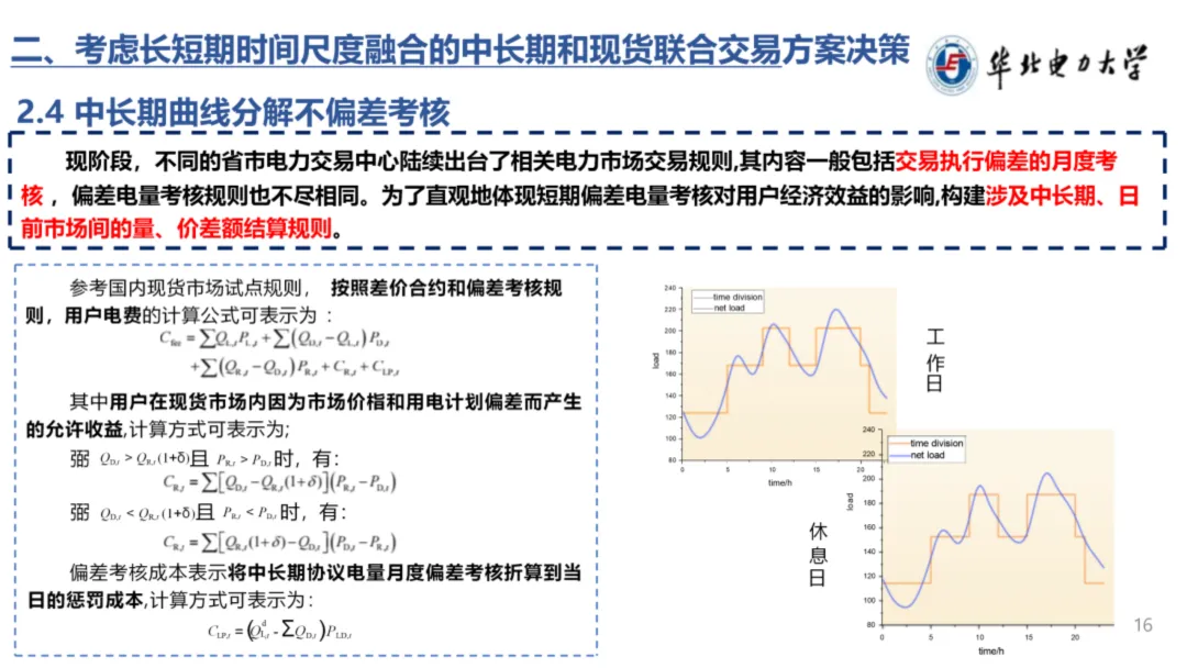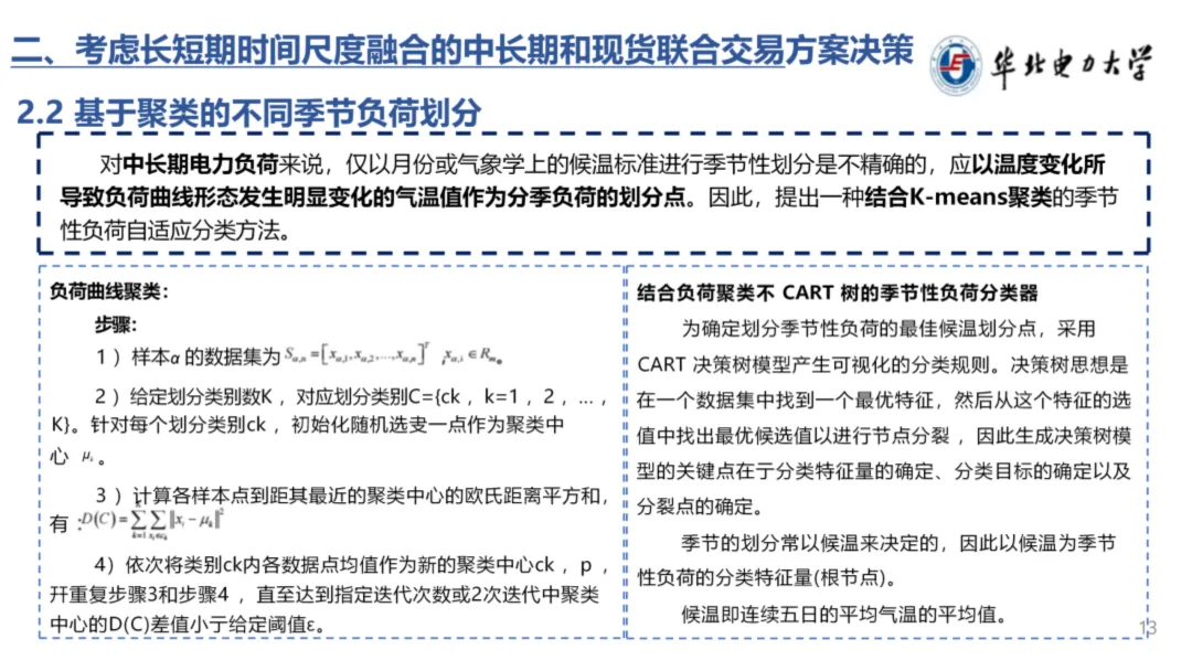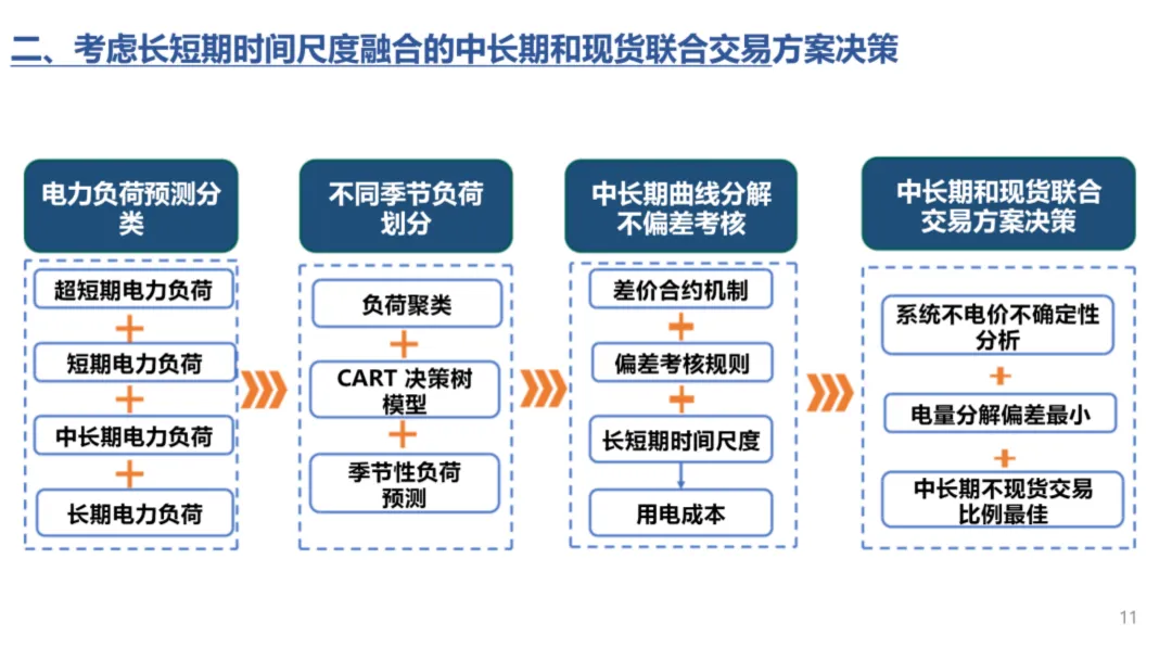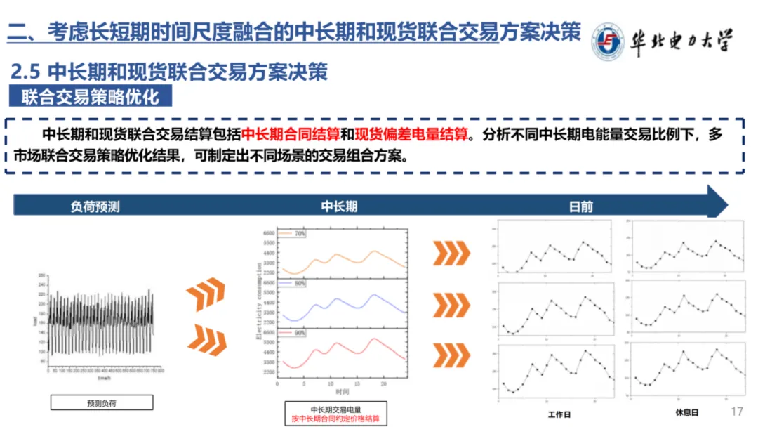 长短期时间尺度融合是联合交易决策的关键。报告提出基于K-means聚类与CART决策树的季节性负荷分类方法,结合CSO优化的ORELM模型提升负荷预测精度,并通过自定义与常用分解曲线将合约电量分解至分时,同时建立偏差考核机制。研究显示,中长期市场交易占比89.3%、现货市场占比10.7%的策略可降低购电成本,且电价置信区间提升会导致成本增加,为交易方案优化提供了量化依据。