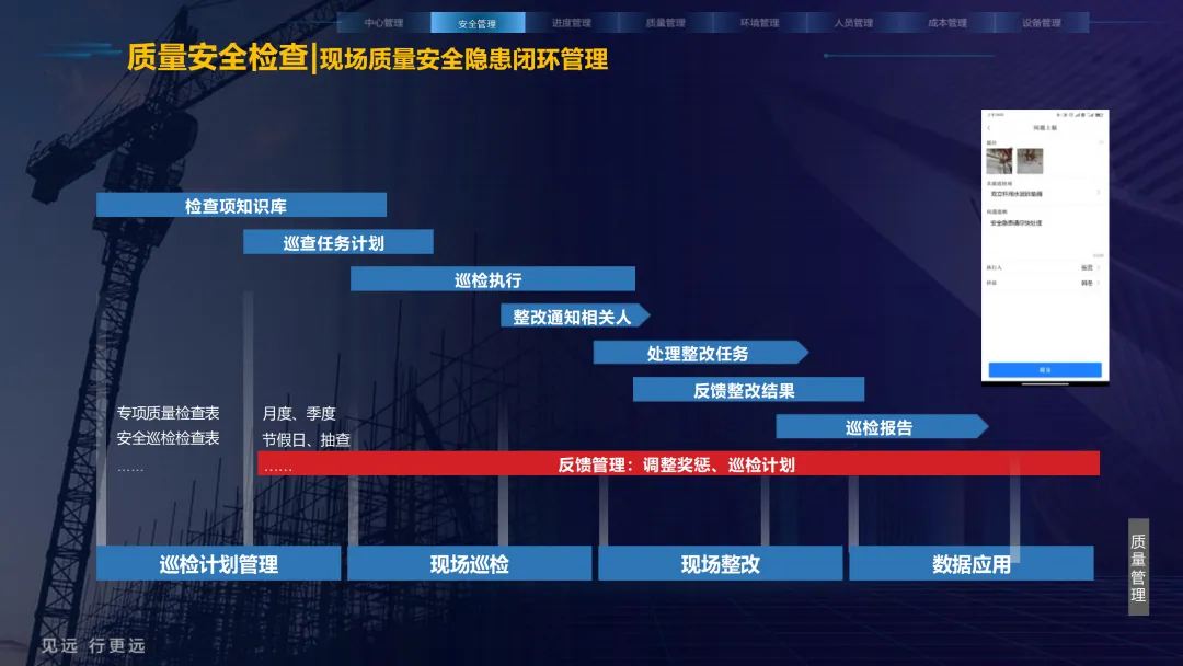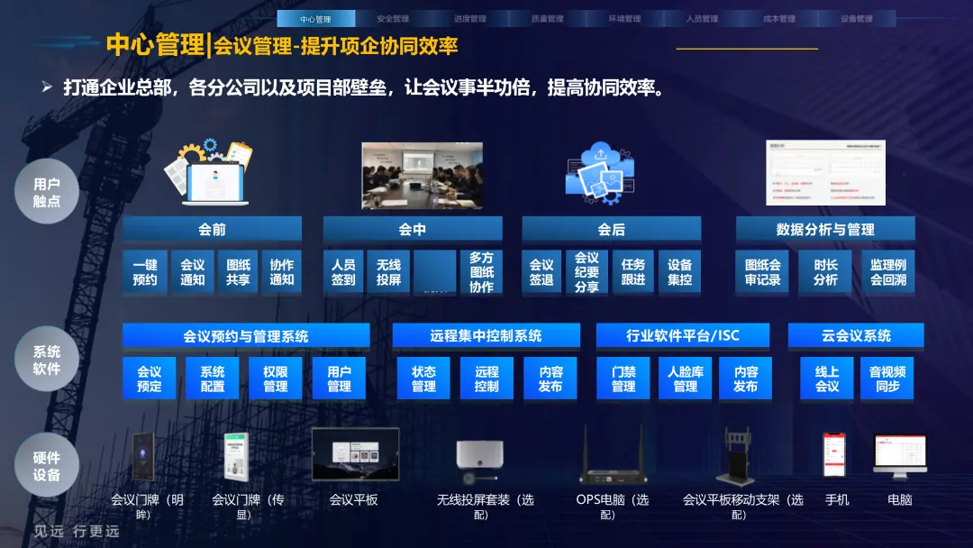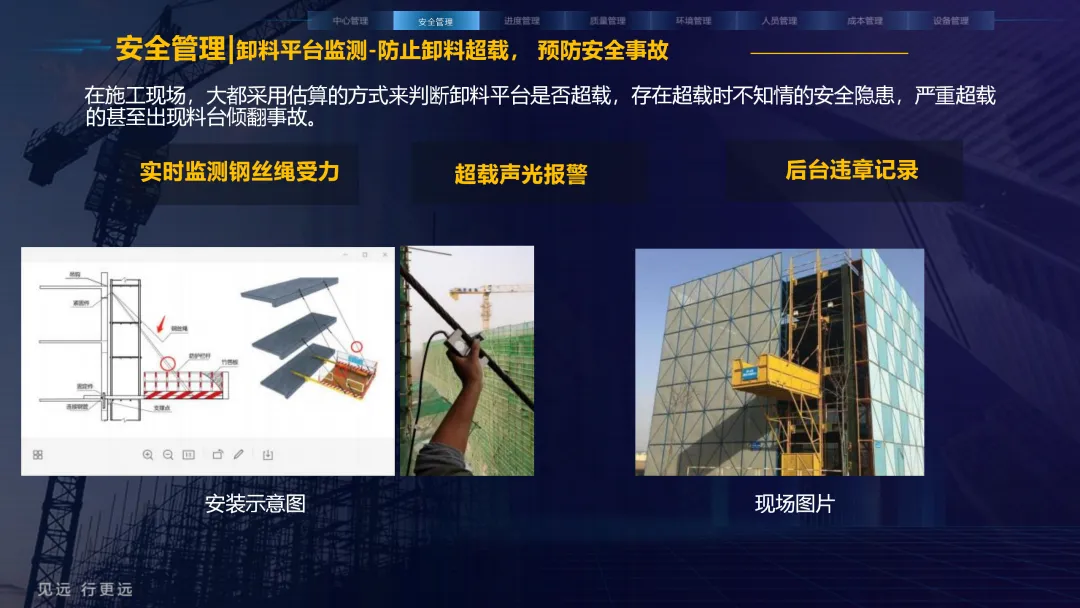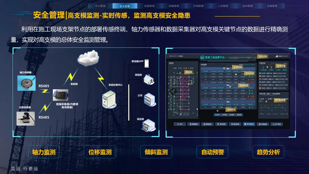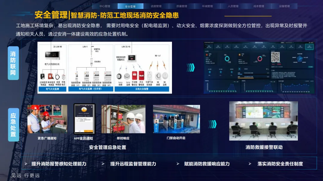 本方案紧密围绕建筑业数字化转型趋势,旨在通过集成物联网、大数据、AI与BIM等前沿技术,系统性解决施工现场在安全、质量、进度、成本和人员管理等方面的核心痛点。方案以构建 “3大底座、8大场景、X个应用”的总体架构为核心,致力于打造一个互联互通、智能协同的数字孪生工地。方案重点构建了八大智能化业务场景:1) 中心管理,通过企业驾驶舱、AR数字工地等手段拉近项企距离,实现项目全景总览与高效指挥;2) 安全管理,利用视频AI与物联网技术,对塔吊、升降机、高支模、深基坑等进行全方位实时监控与智能预警;3) 质量管理,通过移动单兵、施工追溯系统等手段,实现关键工序的可视化监管与过程留痕;4) 绿色施工,实现对环境、扬尘、裸土覆盖的自动监测与合规管理;5) 人员管理,依托劳务实名制与智能安全帽,实现精准考勤、安全调度与权益保障;6) 进度管理,运用延时摄影与激光测量技术,直观、精确地掌控工程形象进度;7) 成本管理,通过无人值守地磅与物资监测,有效堵塞管理漏洞,实现降本增效;8) 设备管理,对工程车辆进行盲区监控与作业行为规范。为实现上述场景,方案构建了坚实的技术支撑体系。其通过低代码平台(慧拼应用)实现快速定制开发,利用AI开放平台赋能边缘智能感知,并通过数据级联与三层开放式数据服务,打破信息孤岛,实现集团、项目、监管部门之间的数据贯通与价值挖掘。