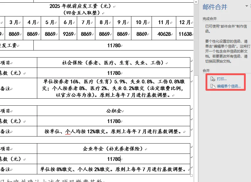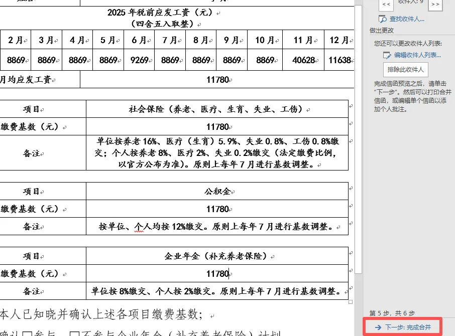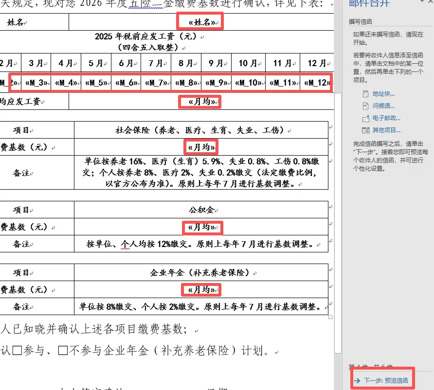 看到这里好奇的小伙伴就会注意到,这样一份文件人手一份,而且里面的数值是因人而异的,如何能快速的批量制作“确认表”就决定了咱们的工作效率。解决这个问题的关键就是“邮件合并”功能,只需六步就能实现,咱们一起往下看。