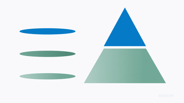 除了立体平台,逻辑图也可以用这个方法,比如我们常见的金字塔模型,用三角形或者smartart自带的效果,就十分呆板: