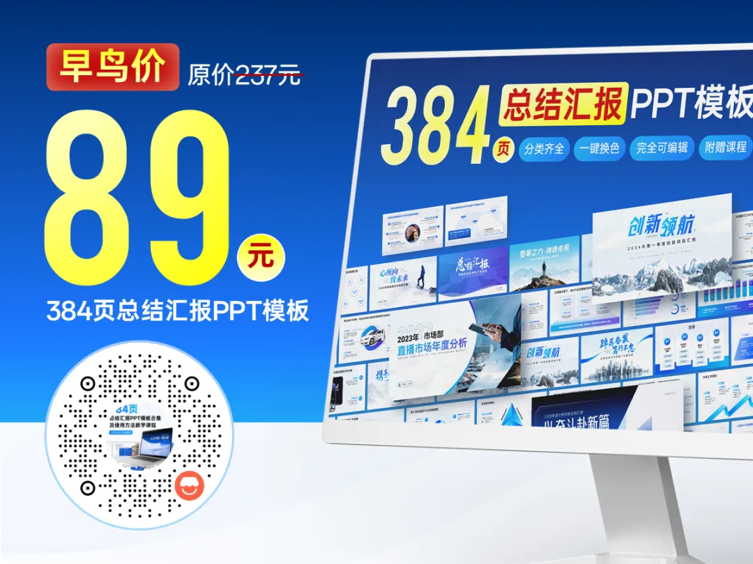 现在拍,三套模板384页,早鸟价仅需89元,而且每年年底免费更新!