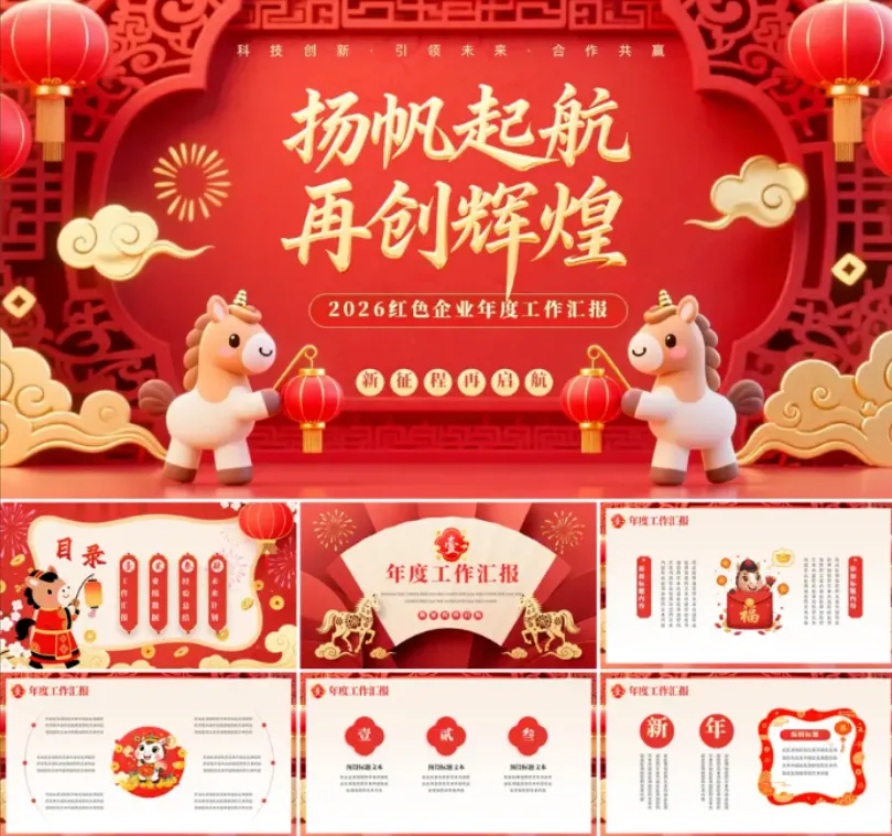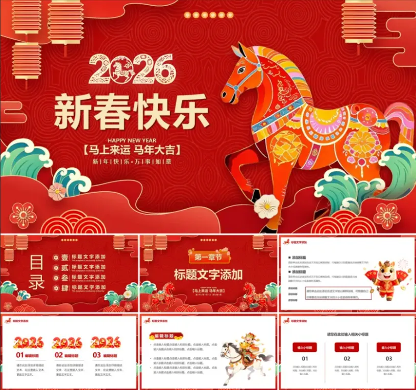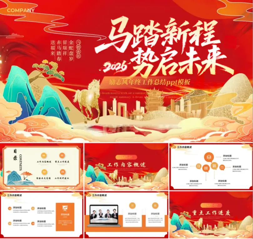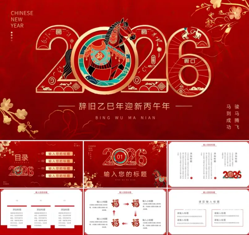 >2026新年主题PPT模板(年会、工作汇报、年终总结等)【可编辑可打印】