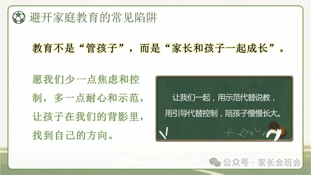 >中小学家长会ppt(通用实用型):教育不是管理,是示范和引导.(含发言稿)