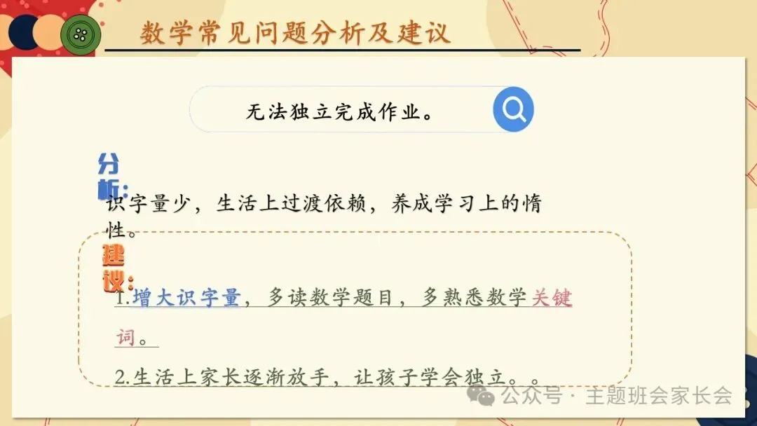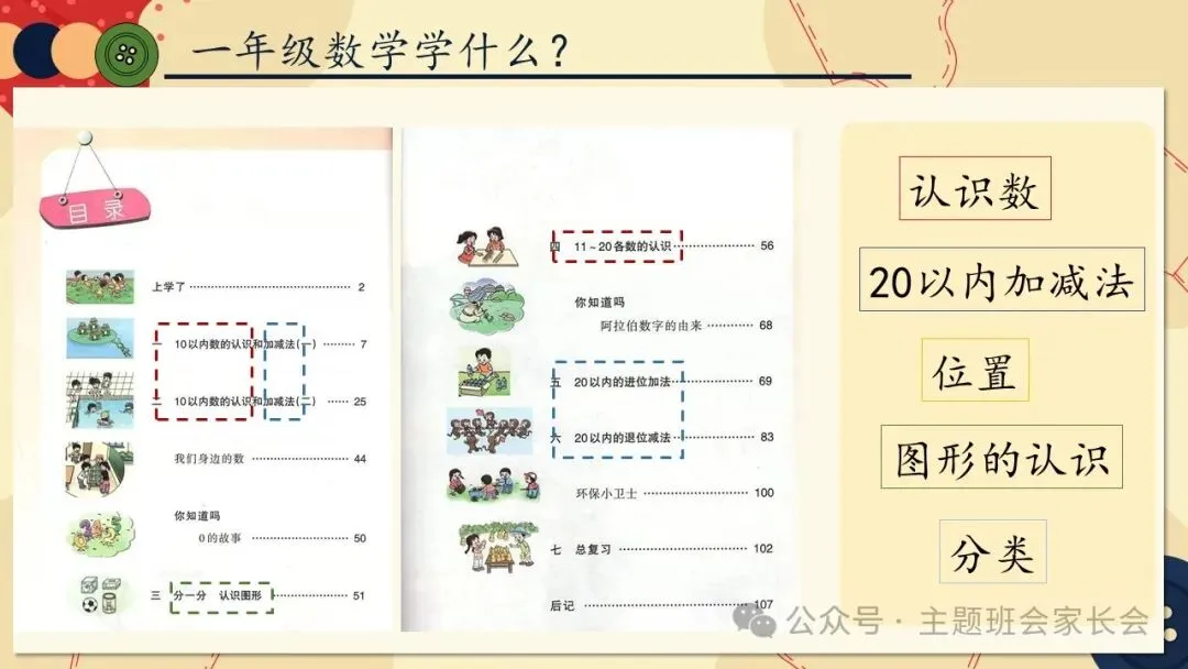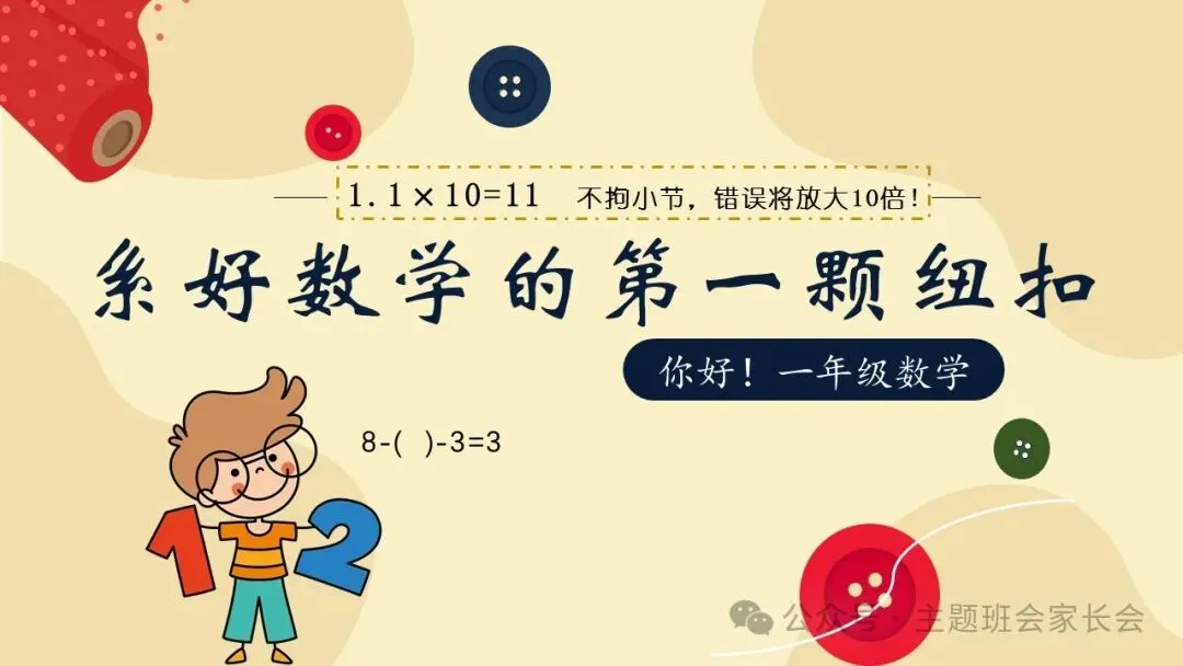 一年级数学家长会ppt课件:系好数学的第一颗纽扣。