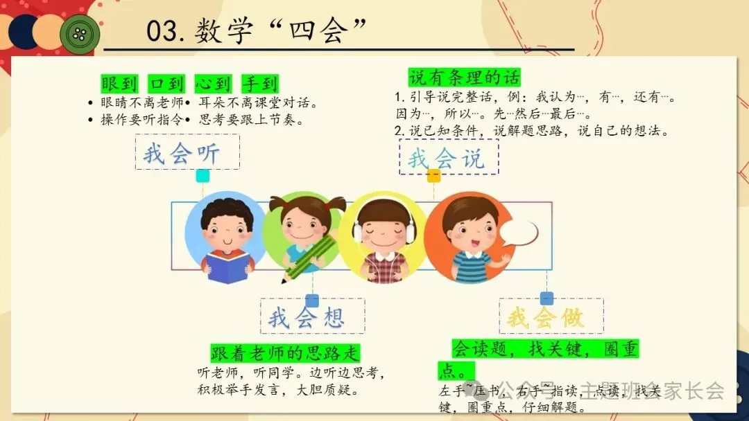 一年级数学家长会ppt:系好数学的第一颗纽扣.(含发言稿)