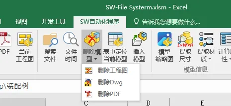 Sub DelDsFiles(DsFtype As String) '删除文件Dim DsFname As String, k As Integer, posn As LongDim Delfs As Boolean, opt As ByteDim StypeArr(), MsgArr(), SuffixArr(), ResultsArr()Dim Status As String, Suffix As String, Results As StringDim fs As ObjectOn Error Resume Next opt = MsgBox("是否确认要删除文件?", vbQuestion + vbYesNo, "不正经的机械仙人") If opt <> vbYes Then Exit Sub StypeArr = Array("model", "slddrw", "dwg", "pdf") SuffixArr = Array("", ".slddrw", ".dwg", ".pdf") ResultsArr = Array("SW模型", "工程图", "dwg", "pdf") Status = ResultsArr(WorksheetFunction.Match(DsFtype, StypeArr, 0) - 1) Suffix = SuffixArr(WorksheetFunction.Match(DsFtype, StypeArr, 0) - 1) Set fs = CreateObject("Scripting.FileSystemObject") With ThisWorkbook.ActiveSheet If myselcondi Then For k = 1 To Selnumber ProcessBarUpdater k, Selnumber, "正在删除" & Status & ":", "共" & Selnumber & "个,第" & k & "个 ..." posn = Selarray(k) If Suffix = "" Then DsFname = .Cells(posn, 2) & "\" & .Cells(posn, 3) & .Cells(posn, 4) Else DsFname = .Cells(posn, 2) & "\" & .Cells(posn, 3) & Suffix End If If Dir(DsFname) = "" Then Results = "无" & Status & "文件!" Else fs.DeleteFile DsFname If Err Then Results = Status & "删除失败!" Err.Clear Else Results = Status & "已删除!" End If End If .Cells(posn, 1) = Results: Results = "" Next Else MsgBox "未选择正确行,程序结束!", vbExclamation, "不正经的机械仙人" End If End With Err.Clear Set fs = Nothing Application.StatusBar = FalseEnd Sub