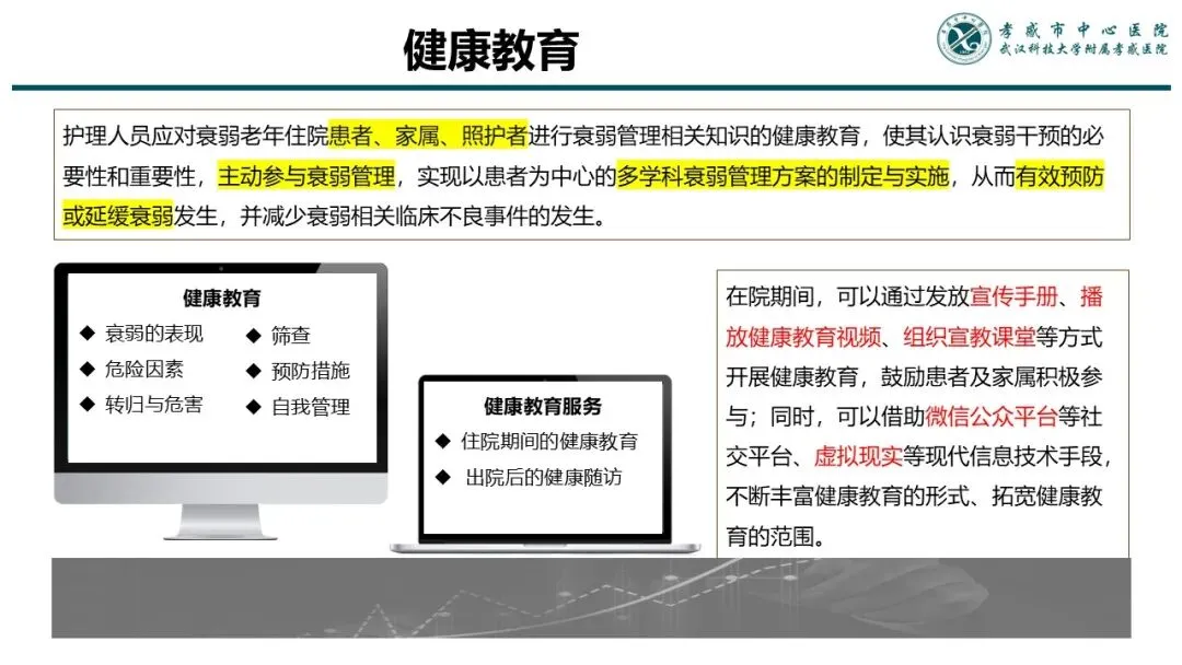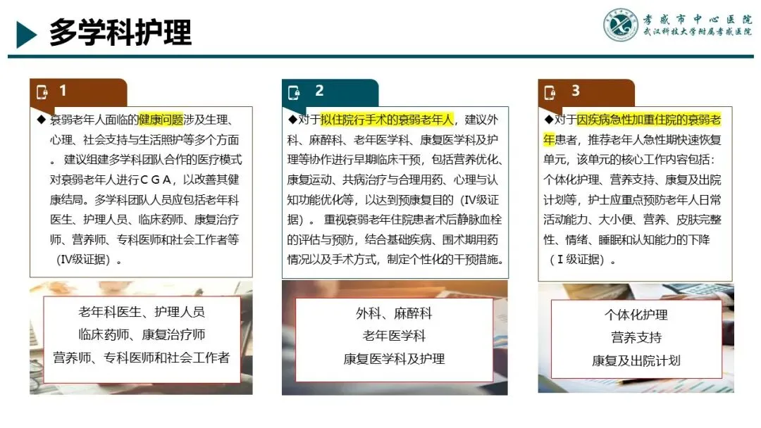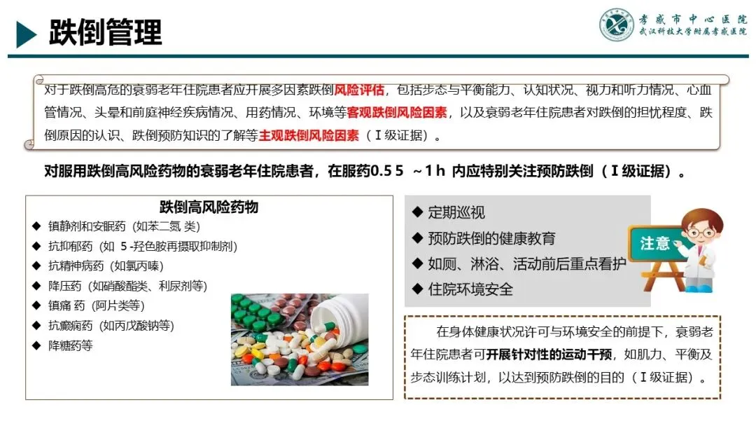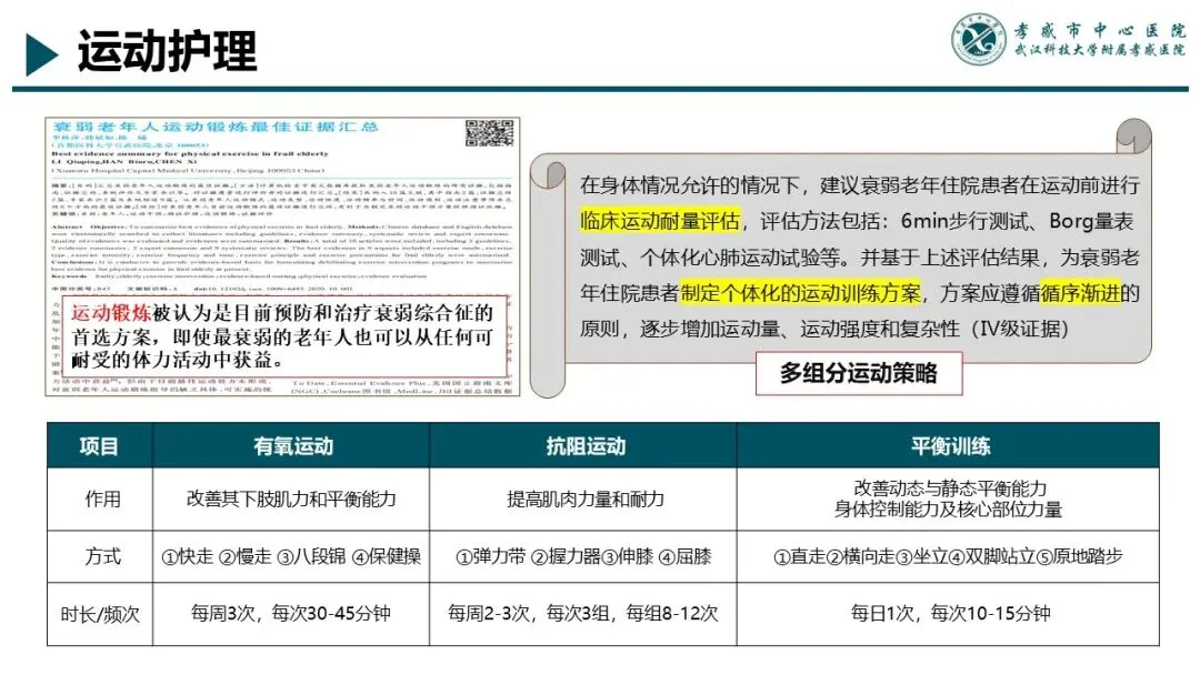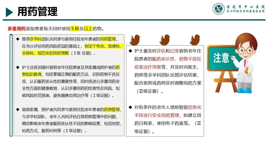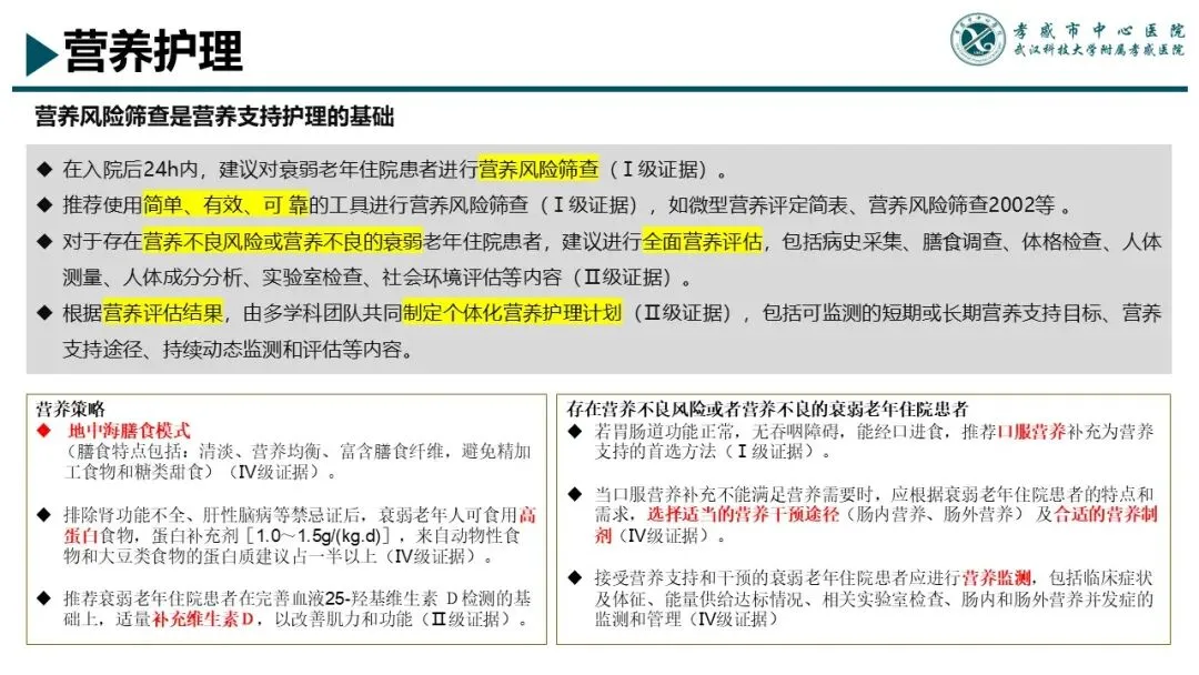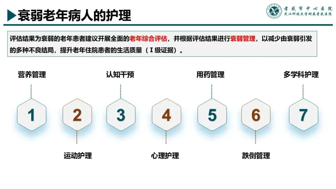 干预部分紧扣临床痛点,将营养支持、多组分运动训练、跌倒防护、心理认知照护、多重用药管理等措施转化为可落地的操作规范,并融入多学科协作模式与家庭照护延伸策略,构建“识别-评估-干预-管理”的全流程照护方案。