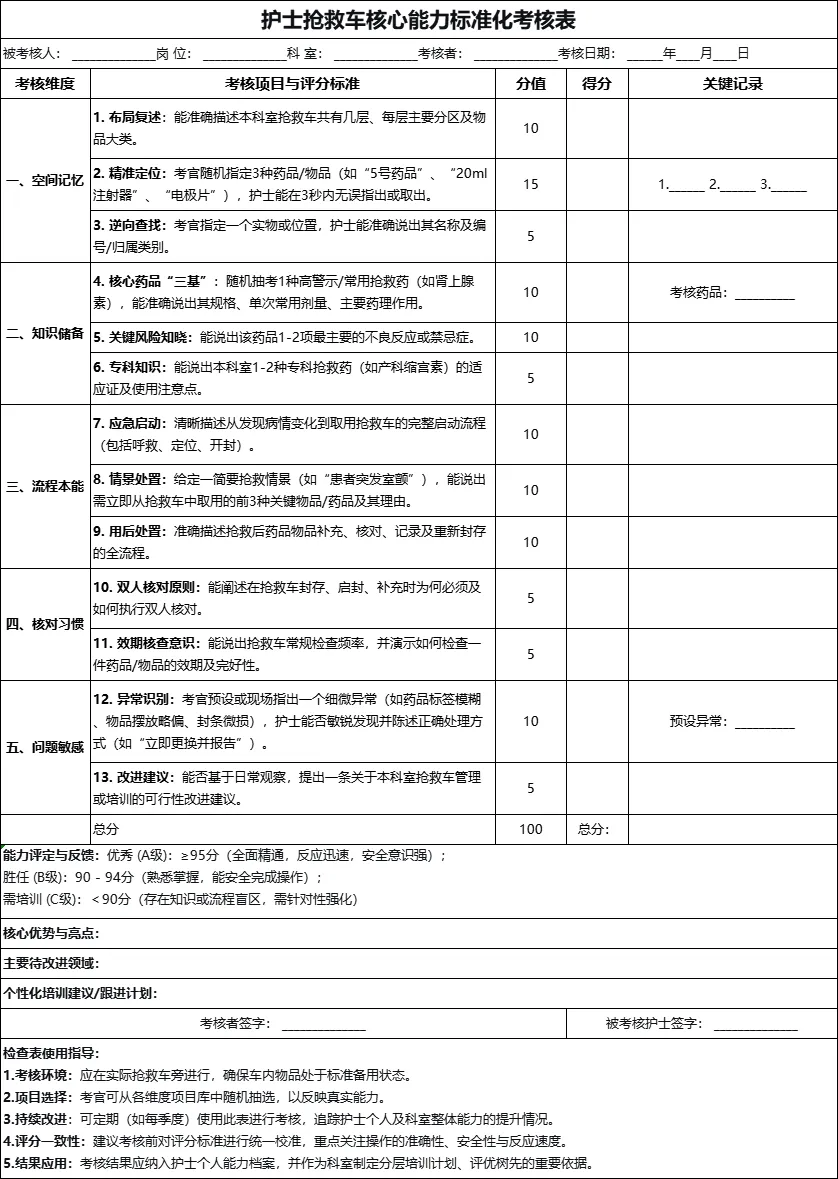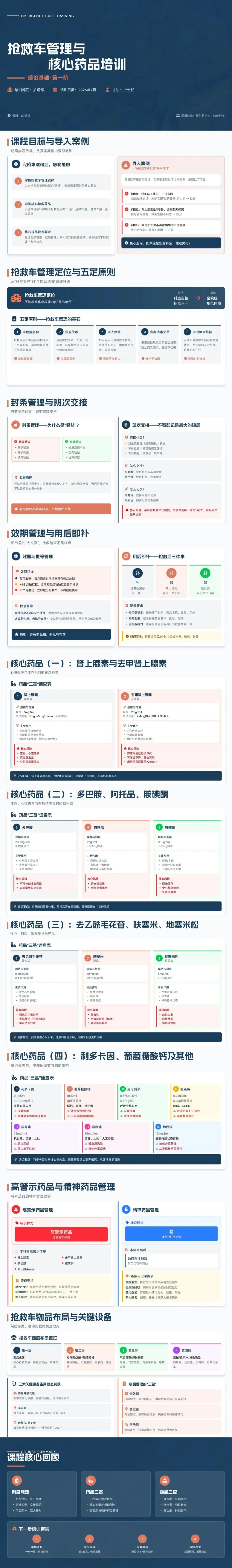 一、新护士“准入”新护士是安全文化的新生力量,必须遵循 “不培训,不上岗;不合格,不操作” 确保其在独立顶班前即具备独立、安全管理抢救车的核心能力。 第一阶:理论基础