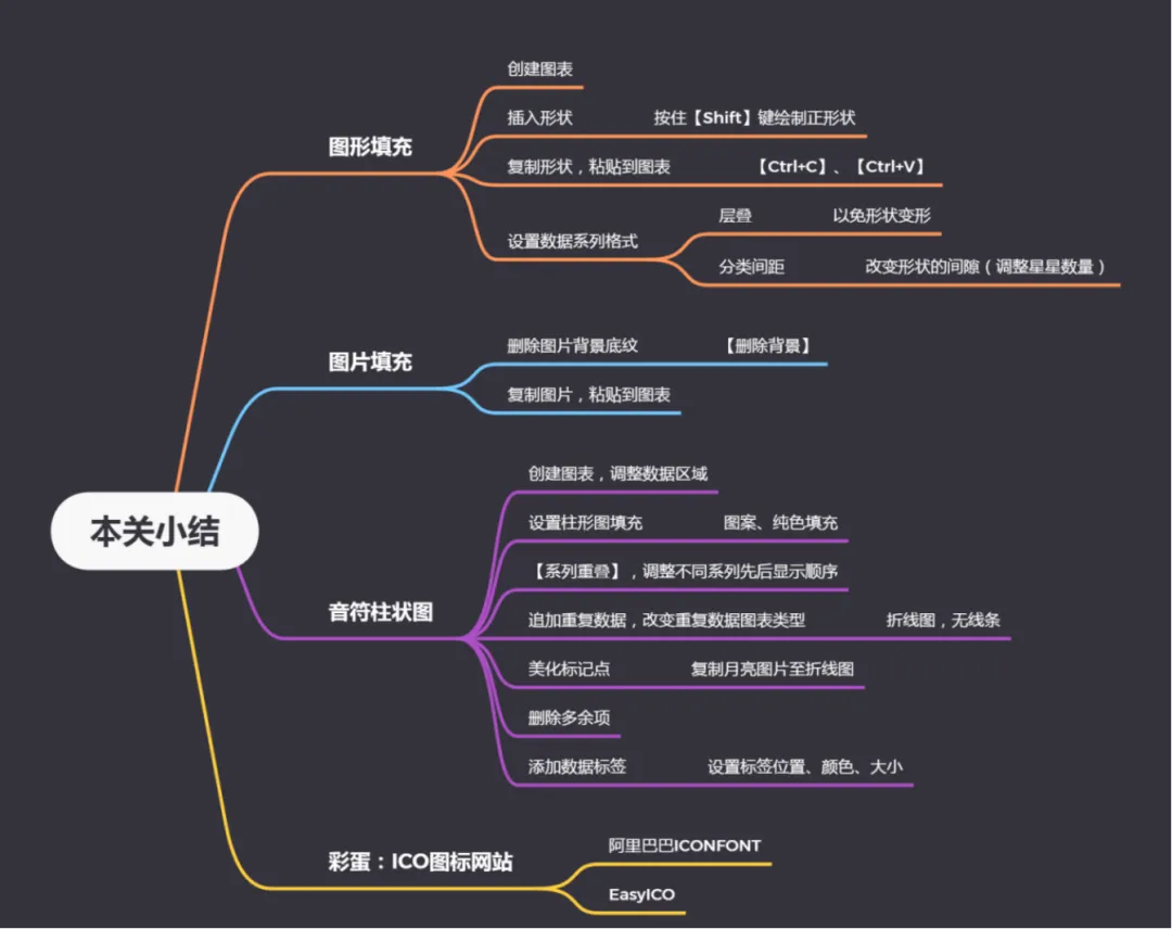 恭喜你!完成了本关的全部实操,今天的内容有些多,小编非常开心看到你的坚持,我们每天进步一点点,你说,未来的你是不是更加闪闪发光呢~为了帮你巩固本节课所学,小编做了一个思维导图,我们一起来回顾下吧: