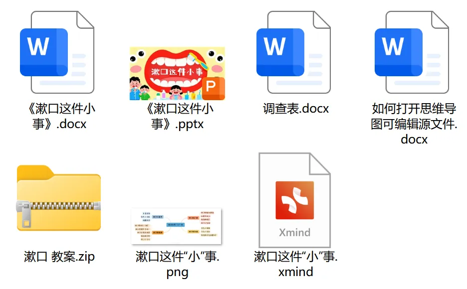 1、经验准备:幼儿已有一定的粘贴经验,知道漱口对口腔健康有益。