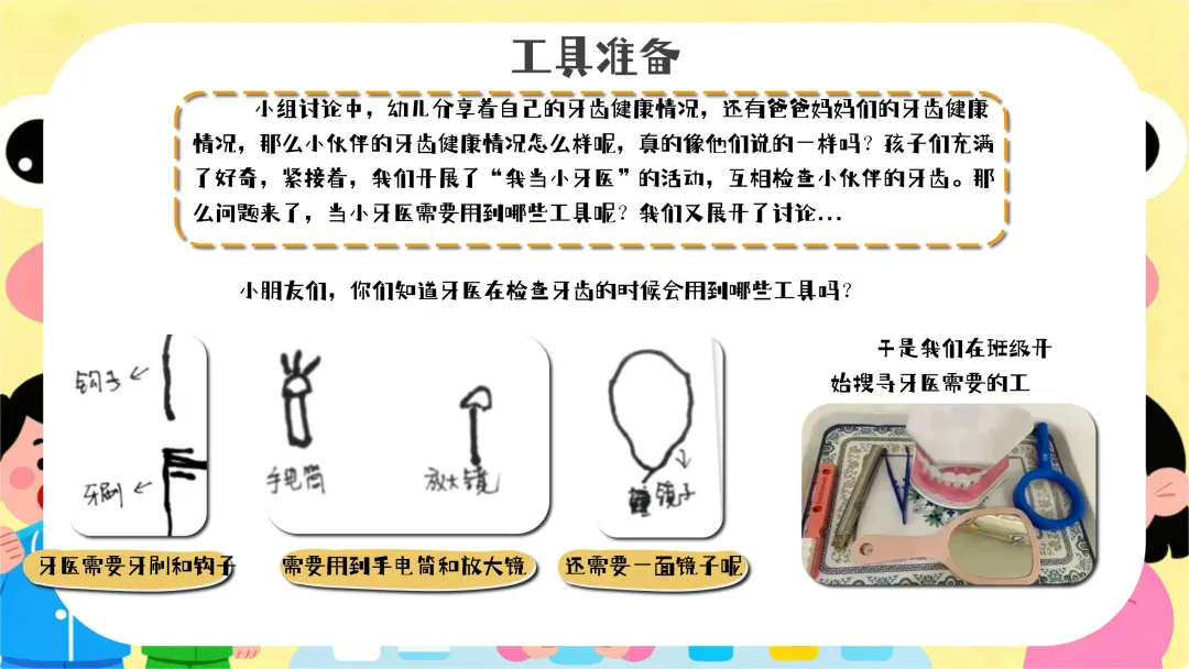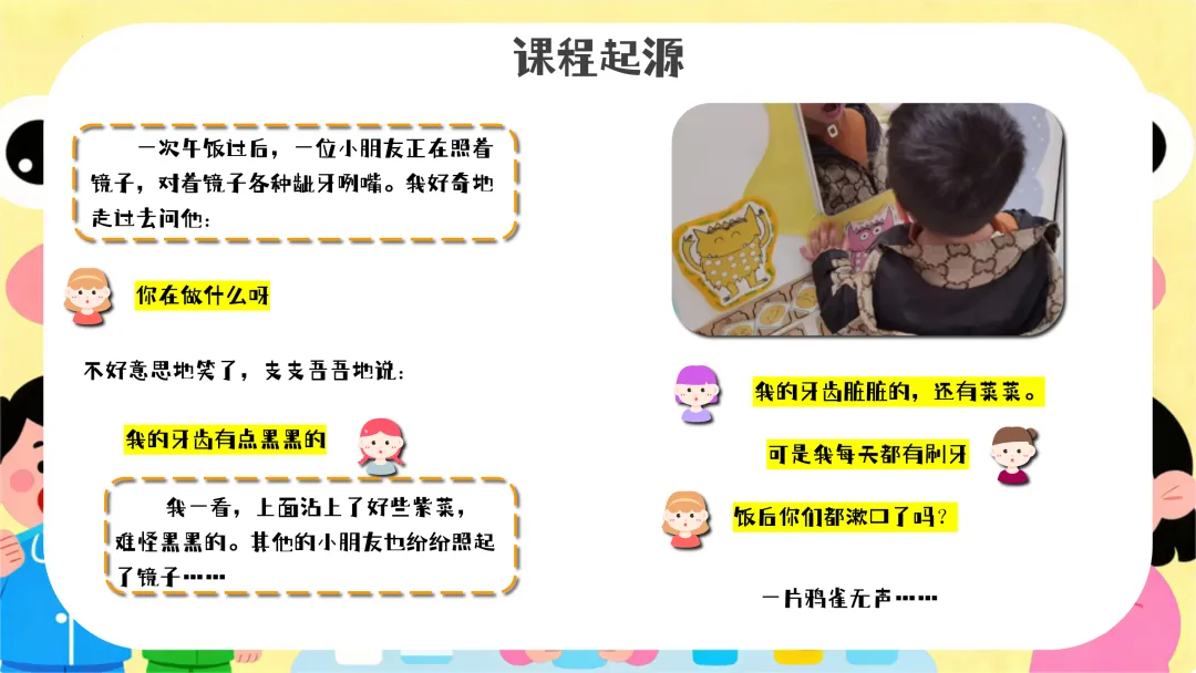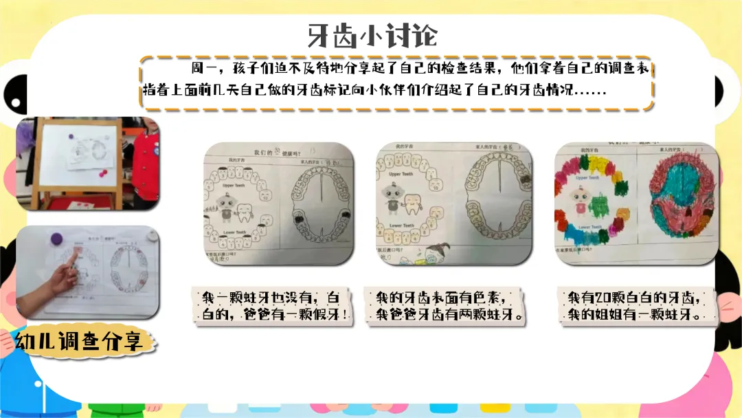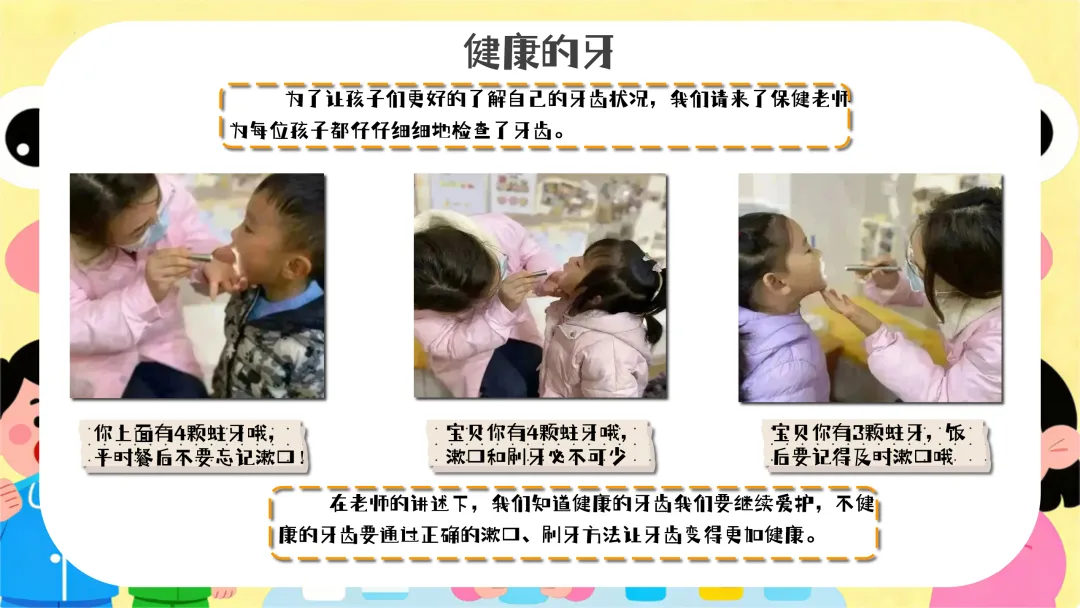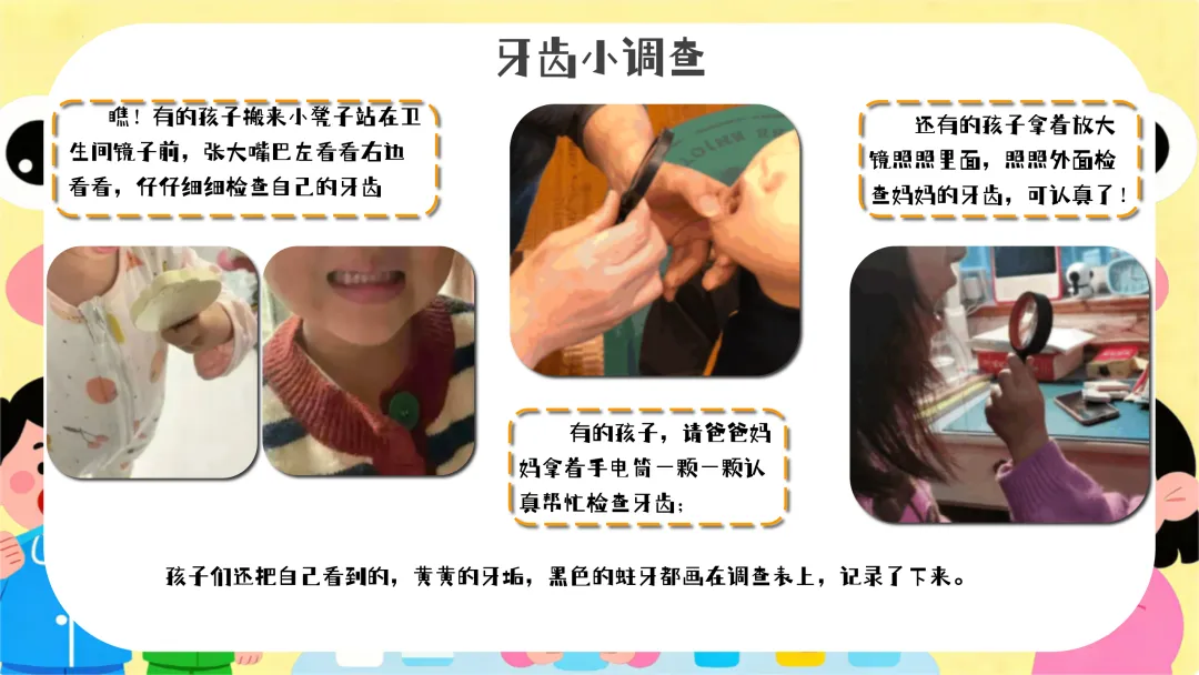 认识口腔细菌(约10分钟):教师拿出镜子,让幼儿观察自己的牙齿,然后展示牙齿模型和细菌图片,讲解口腔中细菌的产生和危害。提问:“小朋友们,你们看看牙齿上可能藏着哪些细菌呢?细菌会对我们的牙齿做什么坏事呀?”