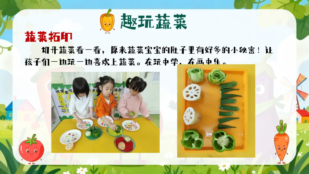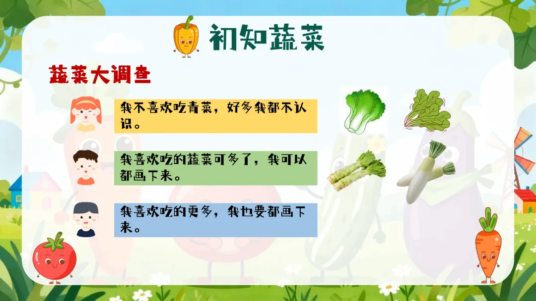 展示一些果蔬的图片,说:“小朋友们,这些果蔬看起来很普通,但它们也能发电哦,你们想不想知道是怎么回事?”引发幼儿的好奇心和探索欲望。