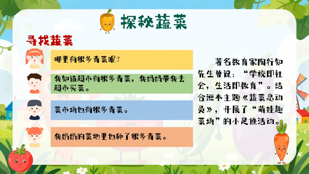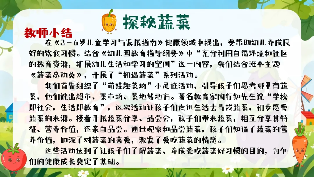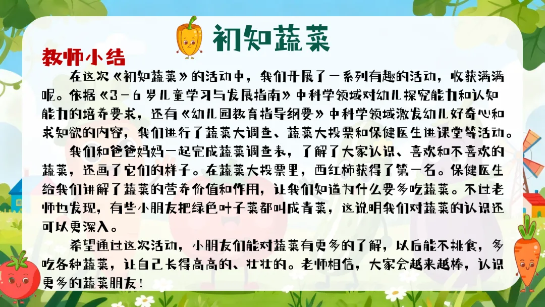 幼儿对周围世界充满好奇,喜欢探索新鲜事物。蔬菜中藏着许多小秘密,通过“果蔬发电”这一主题活动,让孩子们亲自动手操作,能激发他们对科学现象的兴趣,培养观察力和动手能力,使他们在活动中发现果蔬发电的奥秘,感受科学的神奇魅力,满足其求知欲和探索欲。