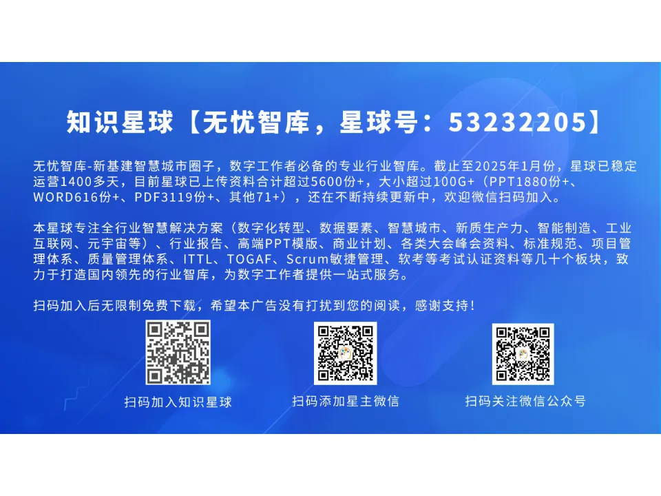 3、方案报告获取方式:扫描下方二维码,直接加入知识星球,下载上述所有资料(平均每日只需1块钱,即可下载星球所有资料,巨划算)