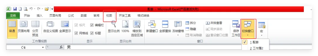 Excel另一个地方可以切换或对照,就是“【视图】”菜单里面,点击切换按钮就可以了。