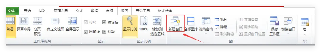 找到“新建窗口”,这时我们感觉没有变化,我们拖拽一下刚才新建的表格,