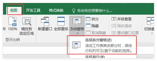 3.冻结窗格>冻结首行、冻结首列、冻结窗格
